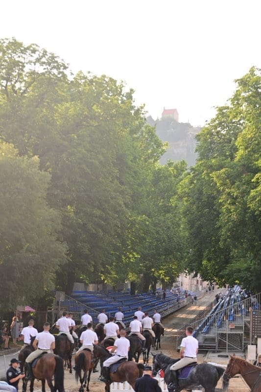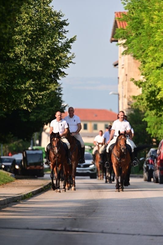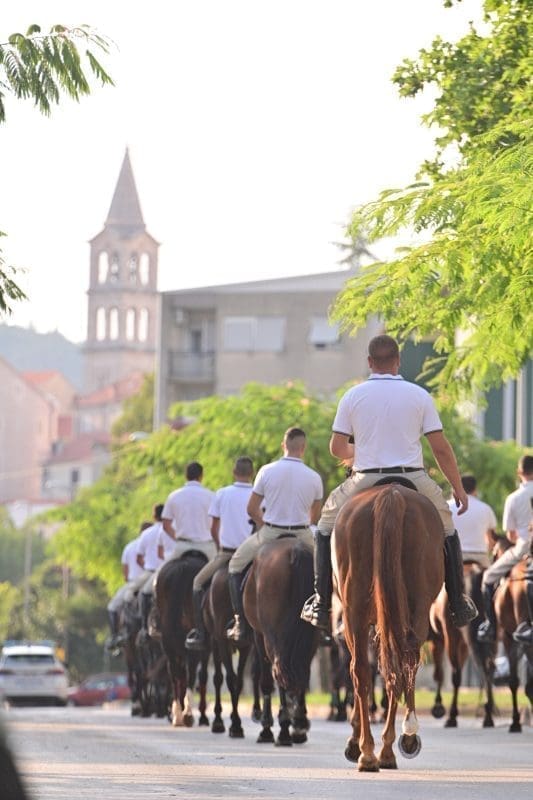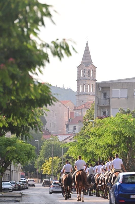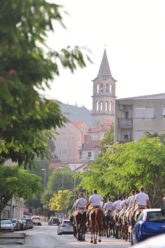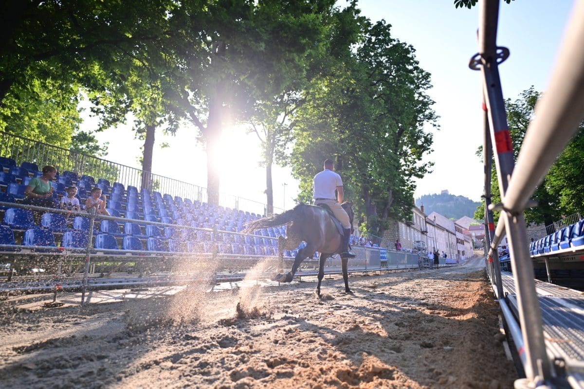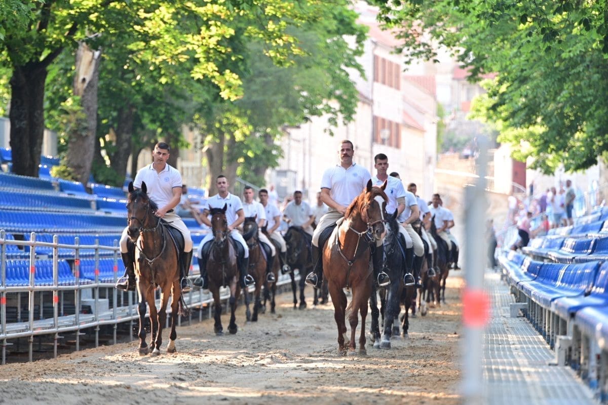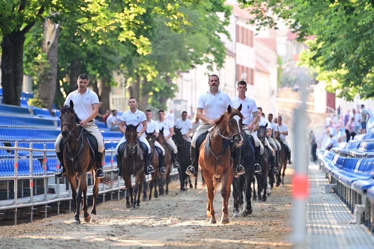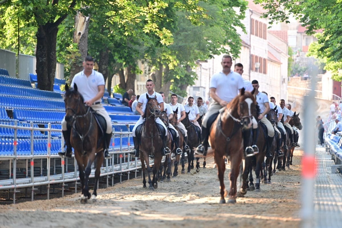 Nakon blagoslova koji su alkari primili od župnik fra Antonio Mravak, od 18 sati istrčali su na Hipodrom gdje su imali prve probe. Prva dva dana, danas i sutra, probe će biti bez kopalja kako bi se konji privikli na same uvjete na stazi, a početak gađanja Alke kopljima planiran je za ponedjeljak.
