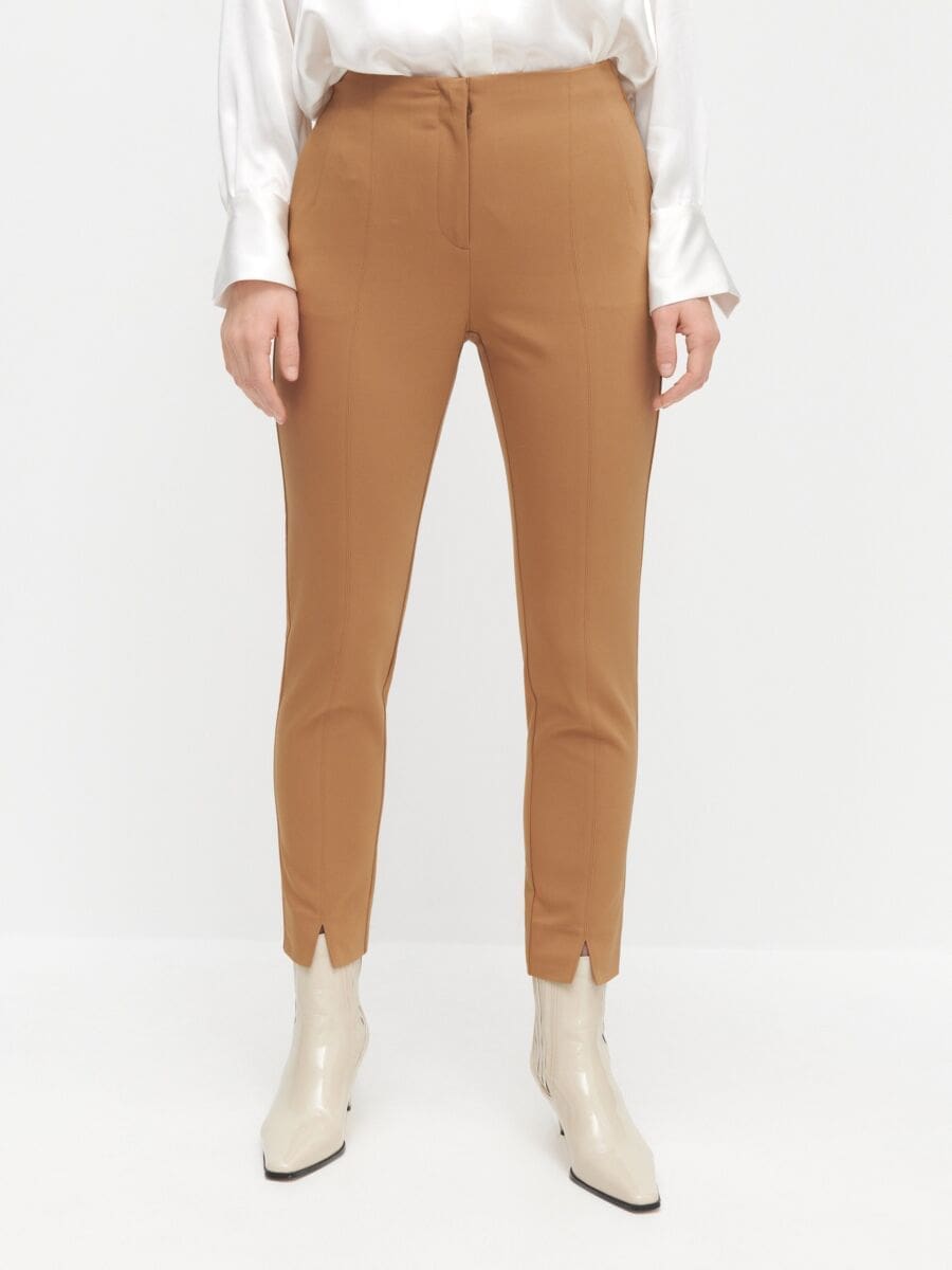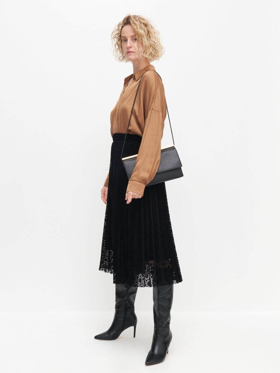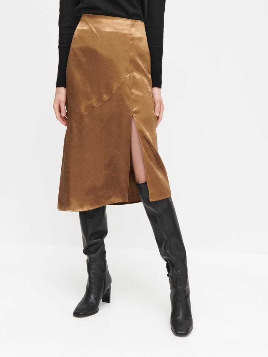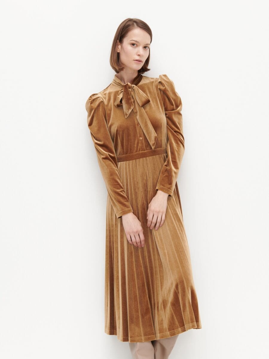 - Želite li izgledati vitkije nosite smeđe-zlatnu monokromatski. Uz još jedan modni trik- mat tkaninu stavite za dio tijela kojeg želite optički suziti, a sjajnu na ono to želite naglasiti.