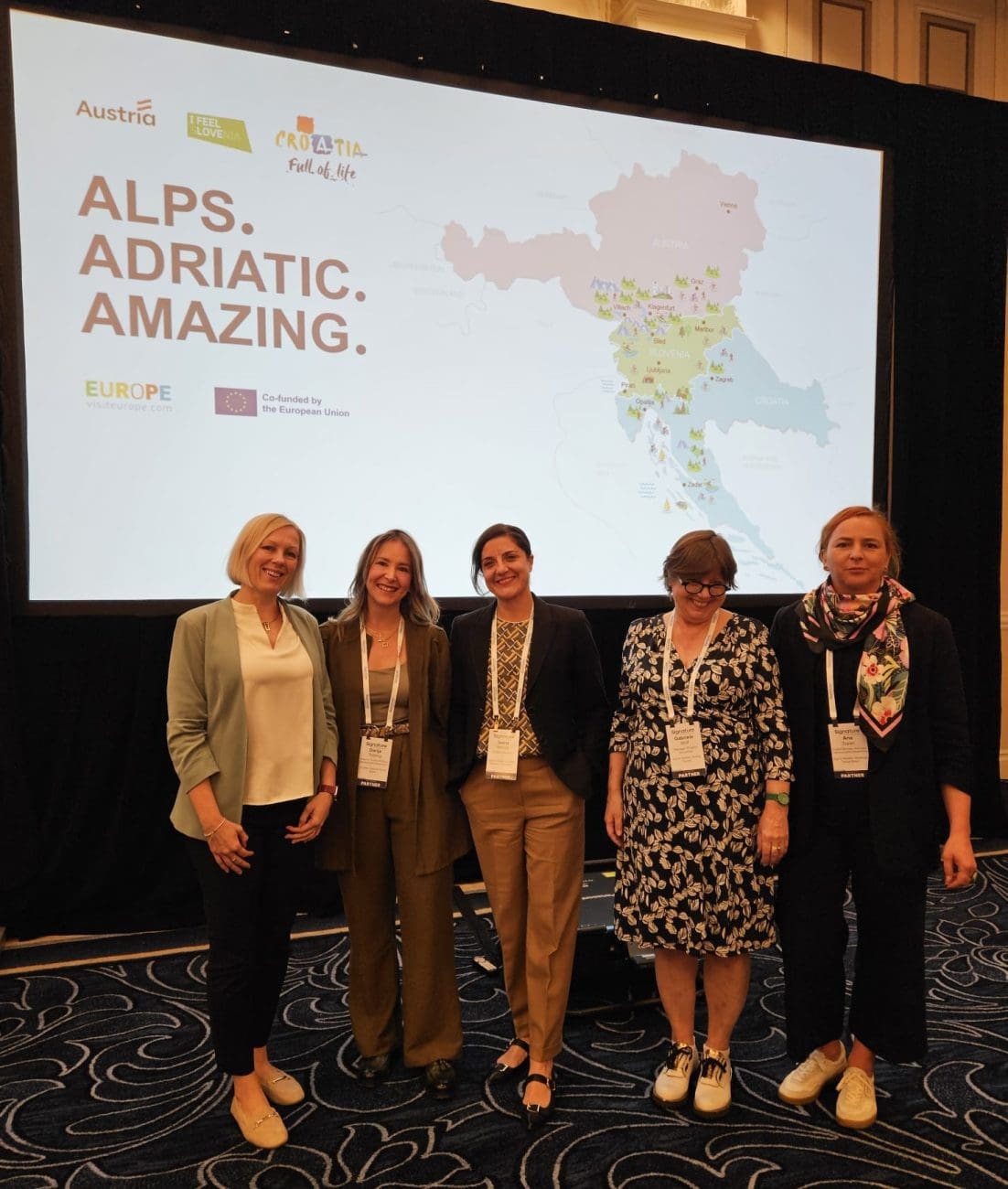 U okviru zajedničke kampanje, provodi se niz B2B i B2C aktivnosti, među kojima je i Konferencija Signature Travel Network u Las Vegasu. Tako se ovih dana, odnosno do 13. studenog tri zemlje zajednički predstavljaju na jednom od najutjecajnijih događanja luksuznog turizma u SAD-u. Fokus je na prezentaciji održivih i autentičnih iskustava namijenjenih individualnim putnicima koji traže jedinstvene doživljaje na svojim putovanjima. Ove godine, uz nacionalne turističke organizacije, na događanju sudjeluje i nekoliko destinacijskih organizacija iz alpsko-jadranske regije – Vipavska dolina, Julijske Alpe, Kras, Umag i Friuli Venezia Giulia.