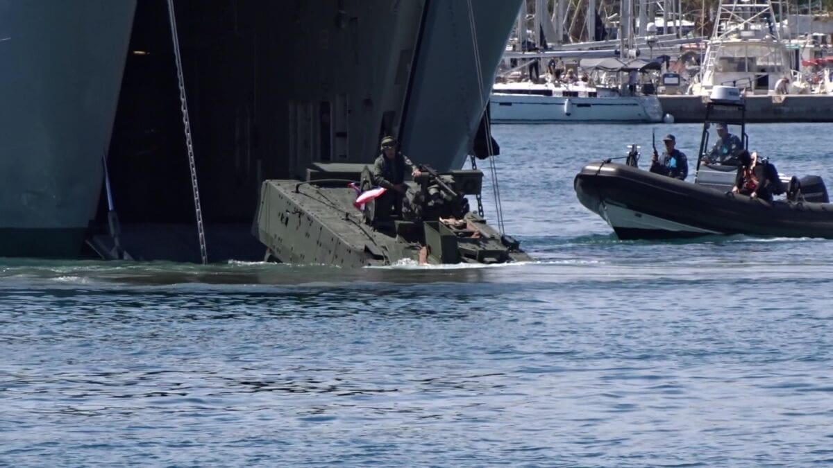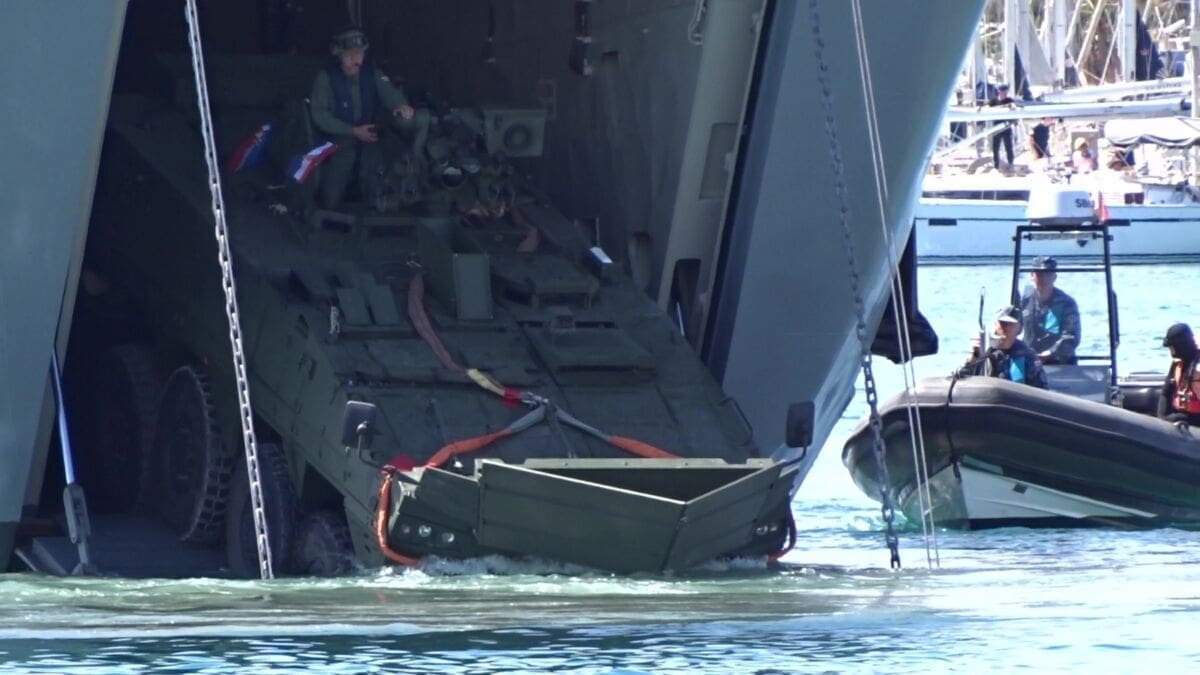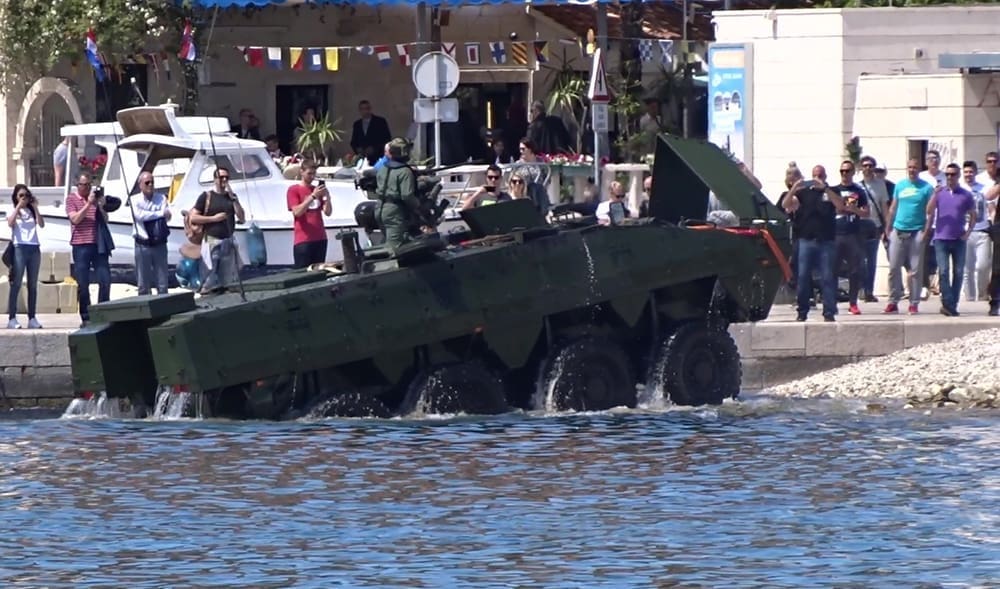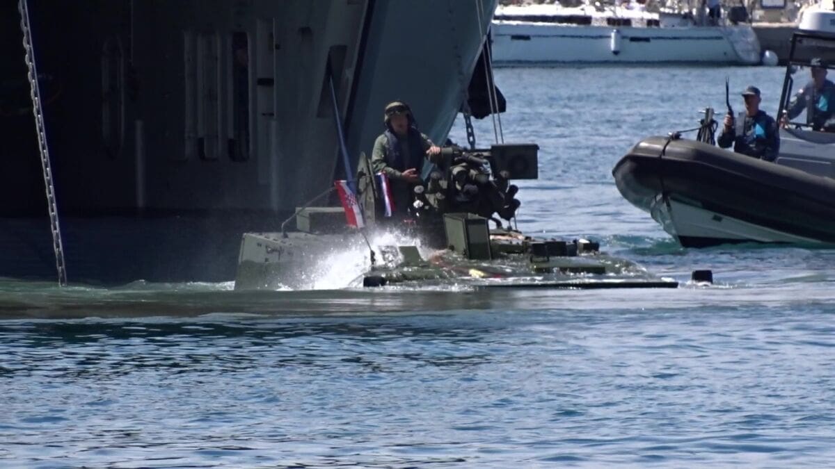 Na splitsku Rivu sletio je Kiowa Warrior, a lukom su zaplovili brodovi ratne mornarice. U jednom trenutku iz broda su izašle dvije Amfibijske Patrije. Radi se o oklopnim vozilima s naoružanjem koja, kako im ime kaže, imaju amfibijske sposobnosti, odnosno mogu 'plivati' i kretati se po tlu.