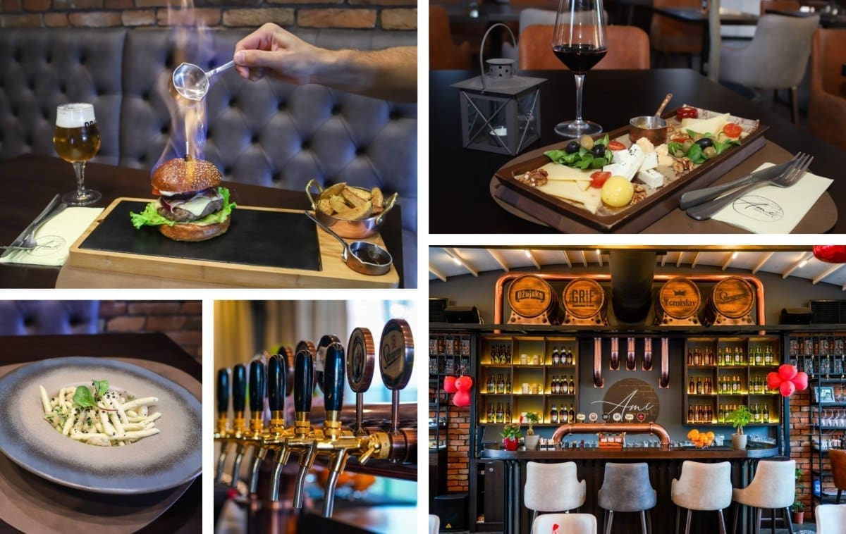 Ami beer & food između ostalog nudi velik izbor piva, točenog piva, likera, vina, rakija, sokova, a hrana će zadovoljiti i ona najistančanija nepca naručite li nešto iz bogate ponude jela: jutarnji obroci, marende, dnevna ponuda jela, hladne plate sa raznovrsnim narescima, odabranim sirevima s medom… burgeri, pivske kobasice…
