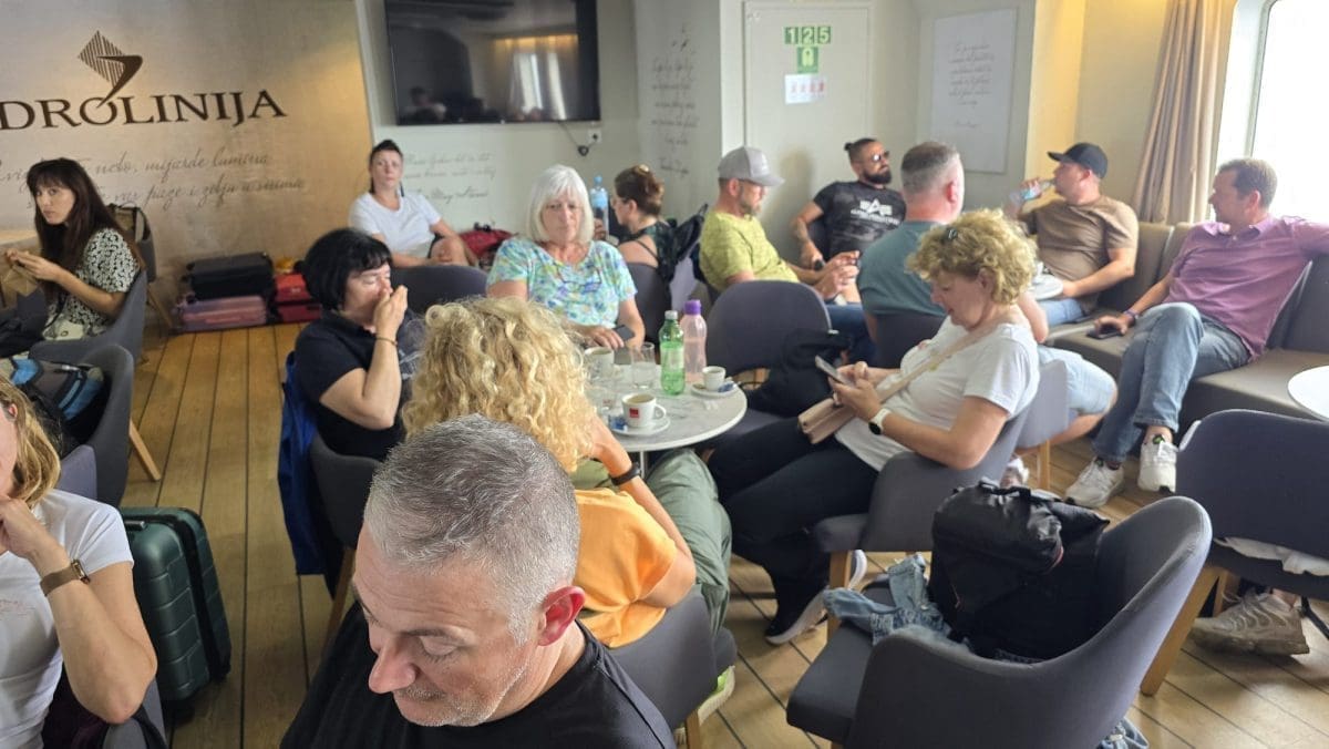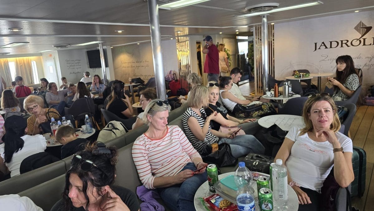 A danas se dogodilo i nešto neviđeno na 'Oliveru'. Krenuo je iz Vele Luke dupkom nakrcan automobilima i putnicima. Slobodnog mjesta za sjesti nije bilo.