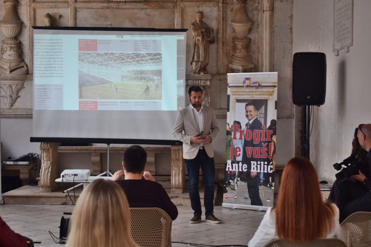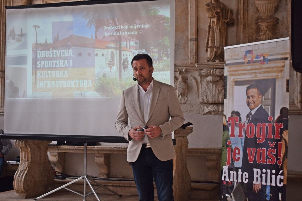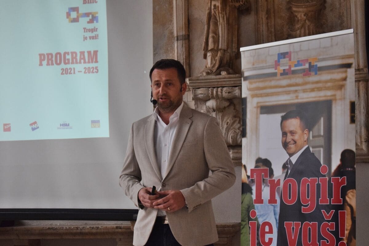 Danas je u Trogiru održano predstavljanje predizbornog programa kandidata koalicije SDP-NHS-HSU-Laburisti za gradonačelnika Trogira, ujedno i dosadašnjeg gradonačelnika, Ante Bilića.