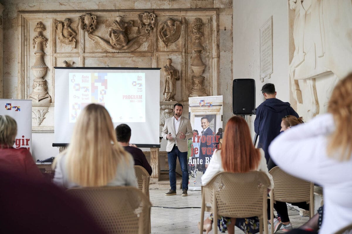 U prostoru Gradske lože svoj predizborni program predstavio je aktualni gradonačelnik Trogira Ante Bilić koji se natječe i vjeruje u novi mandat na čelu grada. Program za naredne četiri godine, ističe, rezultat je višemjesečnog, pa i višegodišnjeg planiranja i osluškivanja potreba grada i građana.