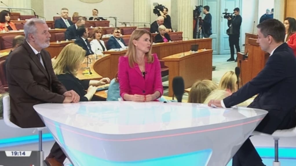 O raspuštanju Sabora i aktualnoj političkoj situaciji u središnjem Dnevniku HRT-a govorili su potpredsjednica SDP-a Sabina Glasovac i politički tajnik HDZ-a Ante Sanader.