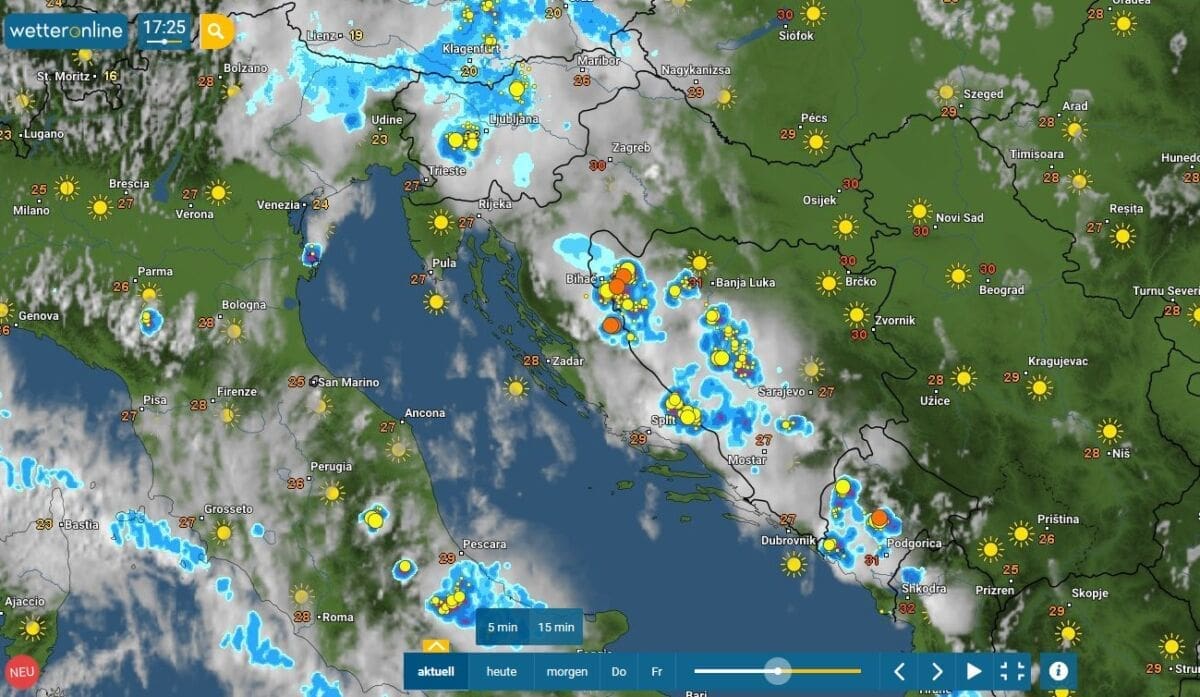 I dok Dalmacija čeka svoje prve radare, a i dalje nije poznato kada će se to dogoditi, prilično dobru zamjenu za radare producirala je njemačka tvrtka WetterOnline koja je lansirala aplikaciju koja na našem tržištu ima naziv "Vrijeme i radar". Ova aplikacija gotovo u realnom vremenu reproducira EUMETSAT satelitske snimke, procjenjuje gdje se nalaze oborine i koliko su intenzivne, daje prikaz lokacije električnih izboja iz oblaka i njihovog intenziteta, ali nudi prognozu po satima, danima pa čak i tjednim unaprijed za lokaciju u kojoj se nalazite.