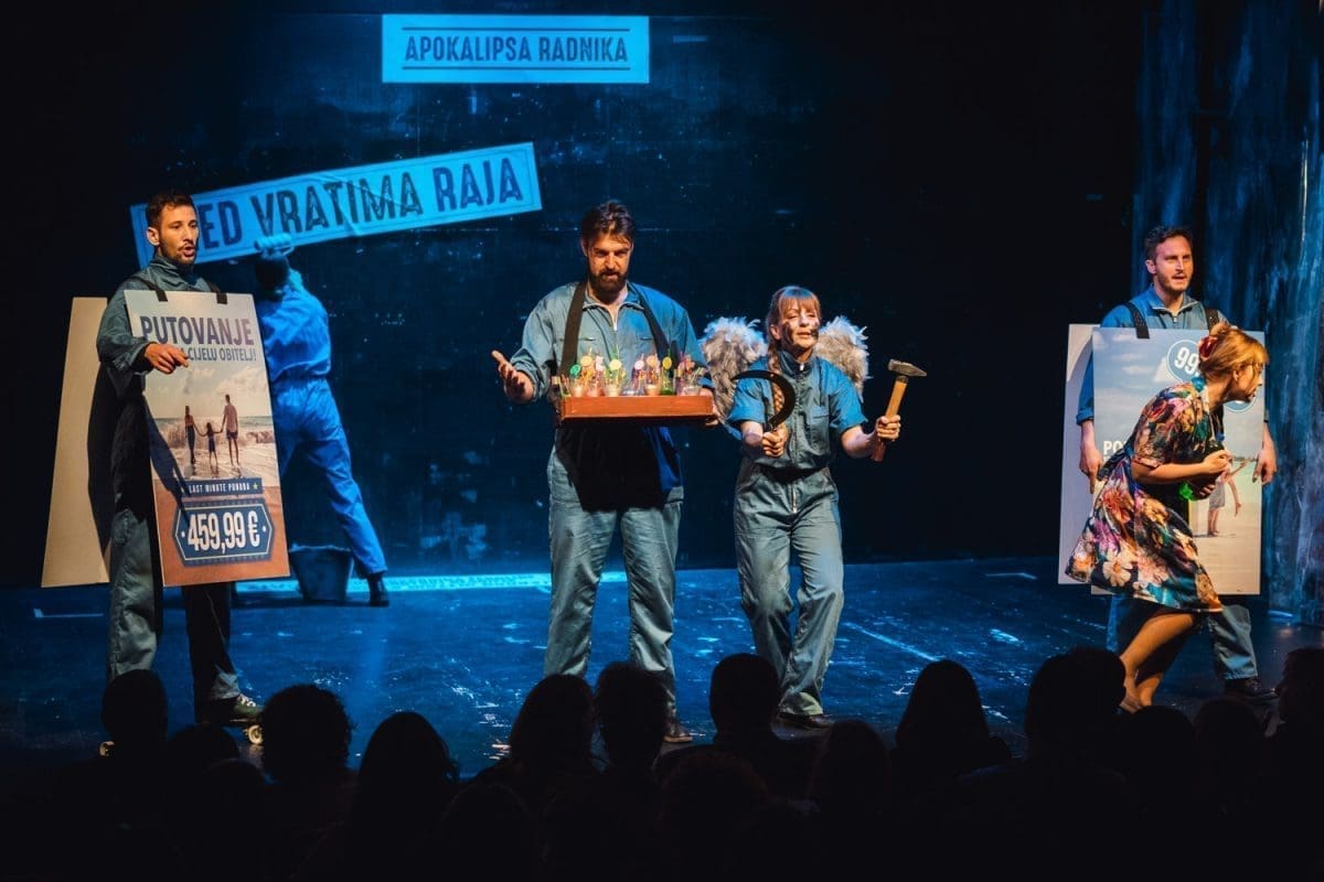 Gradsko kazalište mladih u srijedu, 28. svibnja u 20 sati, izvodi uzbudljivu predstavu „Apokalipsa radnika“ portugalskog romanopisca Valter Hugo Maea, u režiji Dina Mustafića. Riječ je o kazališnom komadu koji udara ravno u srce današnjeg društva – bez zadrške, bez uljepšavanja, s puno emocije i potragom za istinom.„Apokalipsa radnika“ snažna je drama koja secira svakodnevicu suvremenog čovjeka uhvaćenog u beskonačni ciklus preživljavanja, nadanja i razočaranja. Kroz živote likova koji predstavljaju arhetipove današnjih osoba, predstava progovara o temama koje se tiču svih nas: nesigurnosti, gubitku, otuđenju i borbi za osnovna prava, među kojima je i ono na ljubav.Redateljska vizija donosi sirovu realnost, ali i elemente groteske, ironije i nadrealnog, čineći predstavu i potresnom i katarzičnom. Posebnu snagu predstavi daje ansambl Gradskog kazališta mladih koji s nevjerojatnom predanošću utjelovljuje priče koje svi poznajemo, ali o kojima se rijetko otvoreno govori. Dojmljive izvedbe publiku potiču na razmišljanje dugo nakon izlaska iz dvorane.