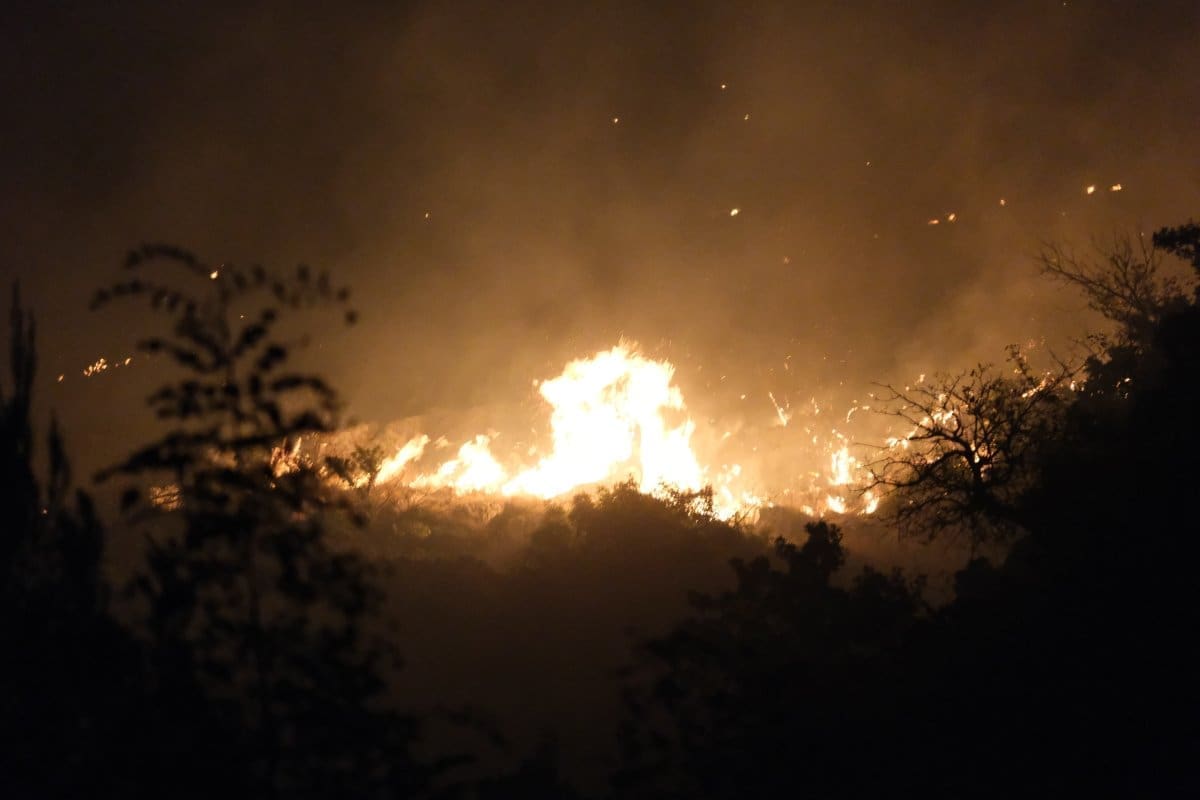 Vatra se pomahnitalo širi. Iz sekunde u sekundu plamen je sve veći. Zbog požara u Sitnom Gornjem od 21 sat zatvorena je cesta Žrnovnica- Sitno Gornje-Srinjine.