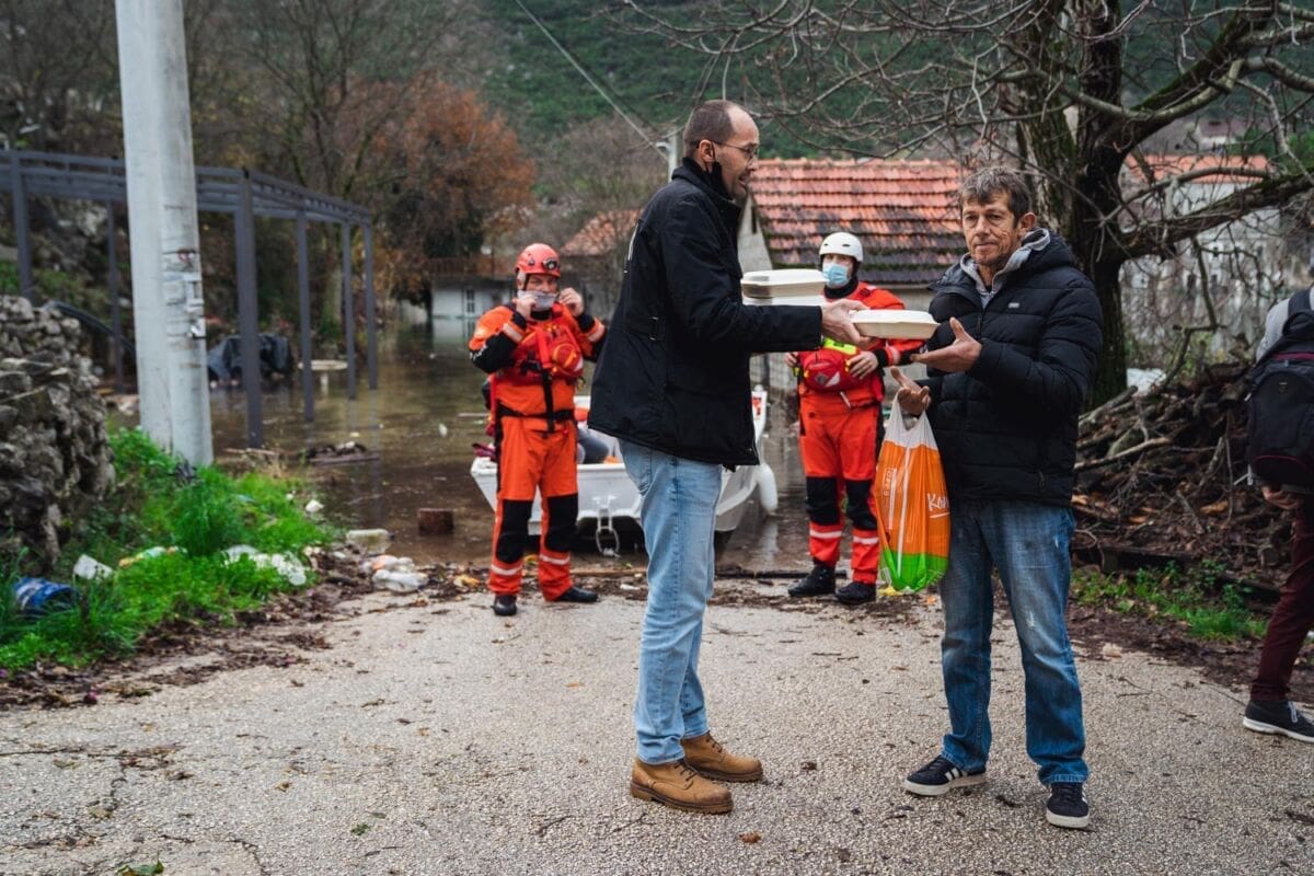 Danas su za sve pripadnike hitnih službi i stanovnika u Etno selu pripremljeni obroci. Podijeljeno je stotinjak porcija rižota i ribe, a sve su organizirali predstavnici ceha ugostitelja i ribara Splitsko-dalmatinske županije.