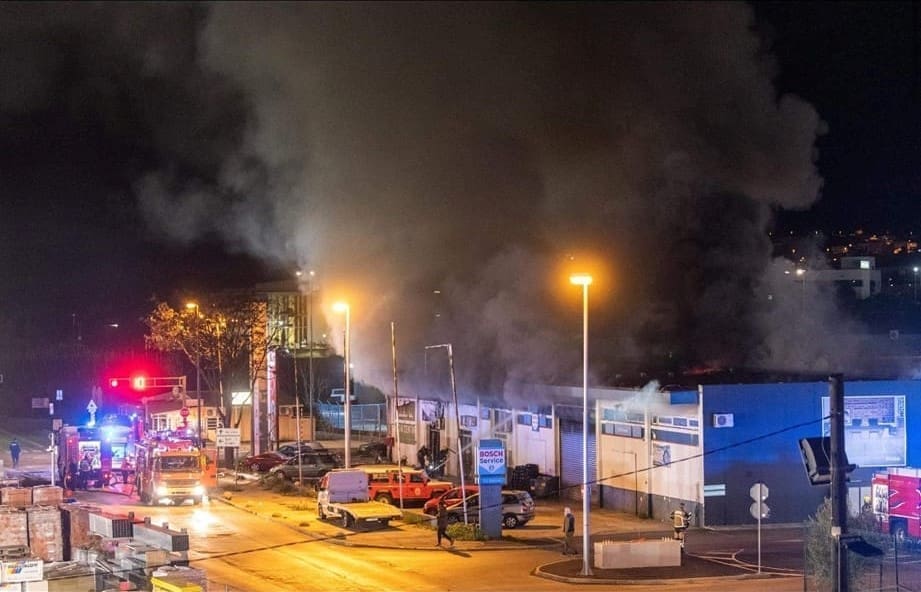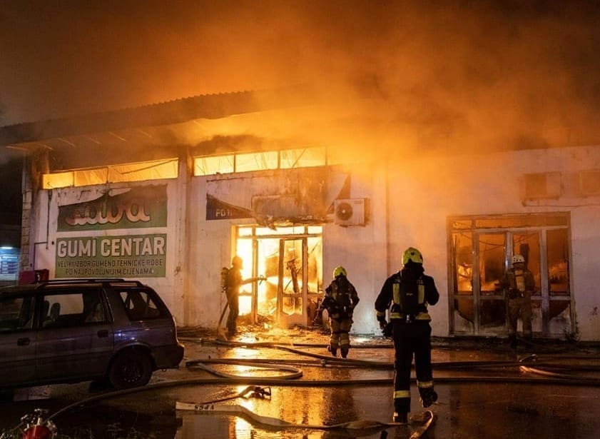 Noćas oko 3 sati izbio je požar u skladištu guma u Splitu. Nalazi se na raskrižju Solinske ceste i Puta Mostina.