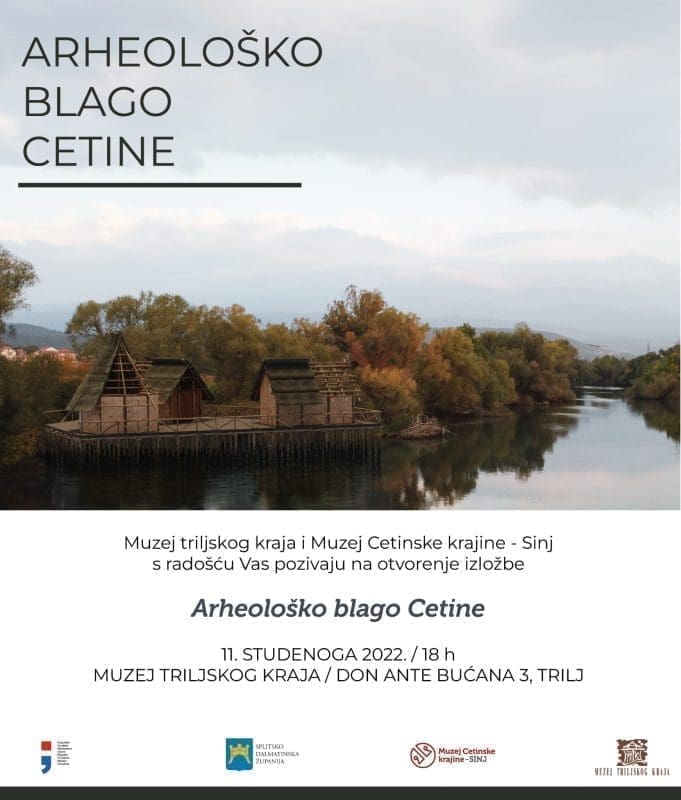 Izložba Arheološko blago Cetine autorica Sanje Budić Leto i Darie Domazet zajednička je izložba Muzeja triljskog kraja i Muzeja Cetinske krajine – Sinj. Cilj izložbe je javnosti prezentirati nalaze koji proizlaze iz korita rijeke, a čuvaju se u fundusima muzeja u Trilju, Sinju i Splitu. Navedeni su pokretni nalazi samo dio „blaga“ jer pravo bogatstvo leži u spoznajama i saznanjima o stanovnicima Cetinske krajine u kasnom brončanom i ranom željeznom dobu – Delmatima.