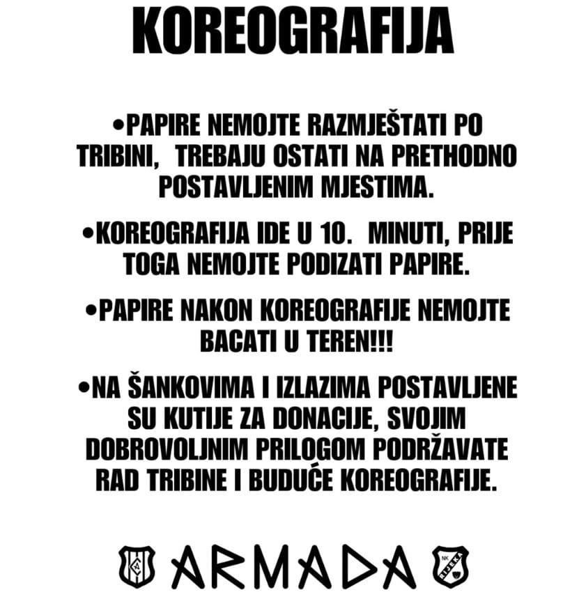 Rijeka će danas pokušati osvojiti naslov u SuperSport HNL-u, a njena navijačka skupina Armada objavila je posebne upute za članove uoči utakmice protiv Slaven Belupa (17 sati) u zadnjem kolu nacionalnog prvenstva. Dan prije utakmice objavljen je proglas koji je bio i poziv na skupljanje na zadnjem treningu uoči utakmice. Oko tri i pol tisuće navijača Rijeke okupiralo je tribine igrališta nekadašnjeg Lučkog radnika, prenosi Index.