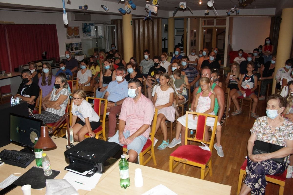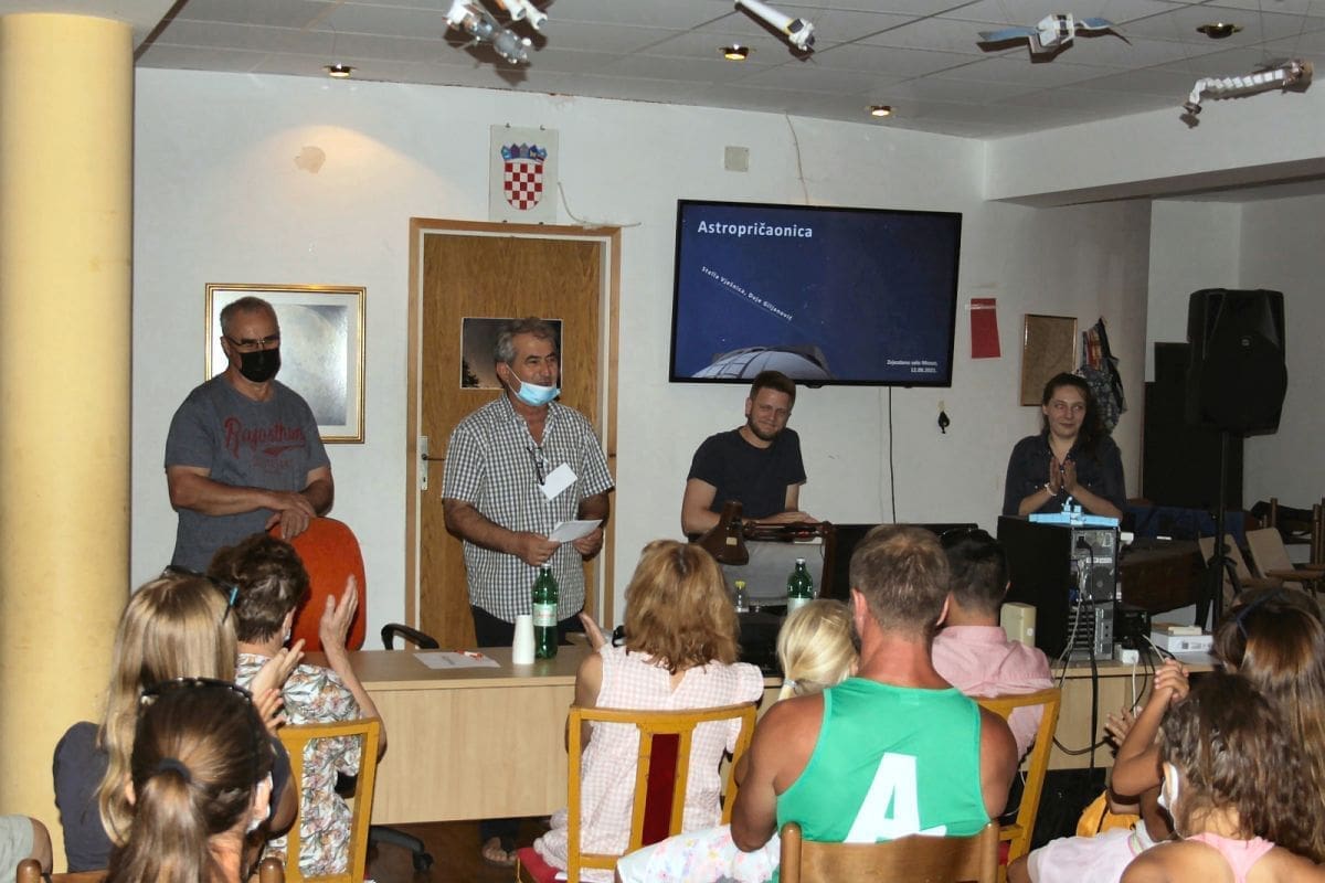 Ta Astropričaonica – kako su je nazvali Stella i Duje – imala je oblik razgovora između dvoje predavača, a bavila se najrazličitijim astronomskim područjima, od Mjesečevih mijena i pomrčina koje on izaziva, do velikih zagonetki kojima se bavi kozmologija. Nakon što su predavačima bila postavljena i brojna pitanja, oduševljeni posjetitelji su ih nagradili gromoglasnim pljeskom.