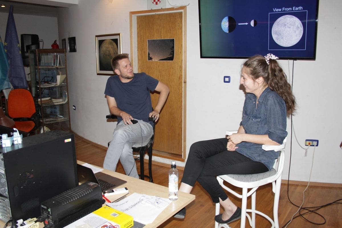 Uslijedilo je zanimljivo znanstveno-popularno predavanje Stelle Vješnice i Duje Giljanovića, mladih splitskih znanstvenika i bivših polaznika ZSM-ove Male škole astronomije.
