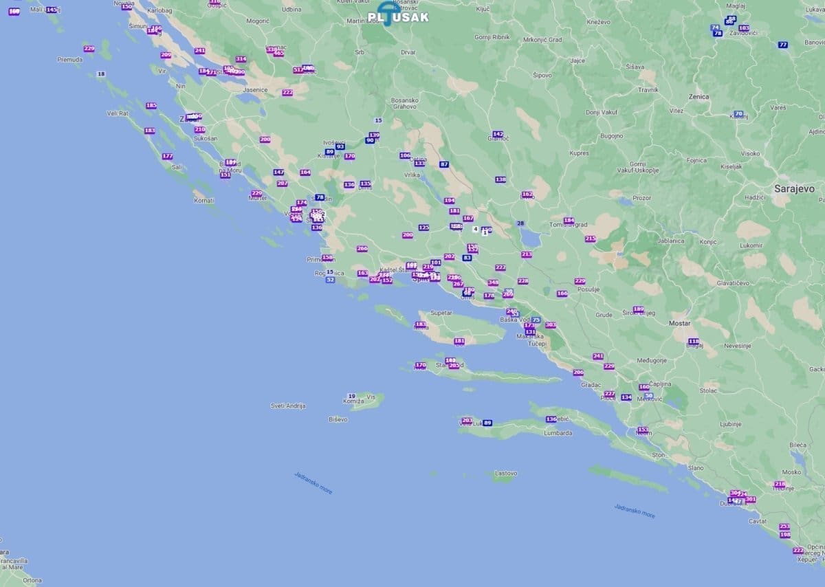 U kasnim večernjim satima tijekom petka jaki grmljavinski oblaci razvili su na nad morem južne Dalmacije te su se postupno premještali prema kopnu.