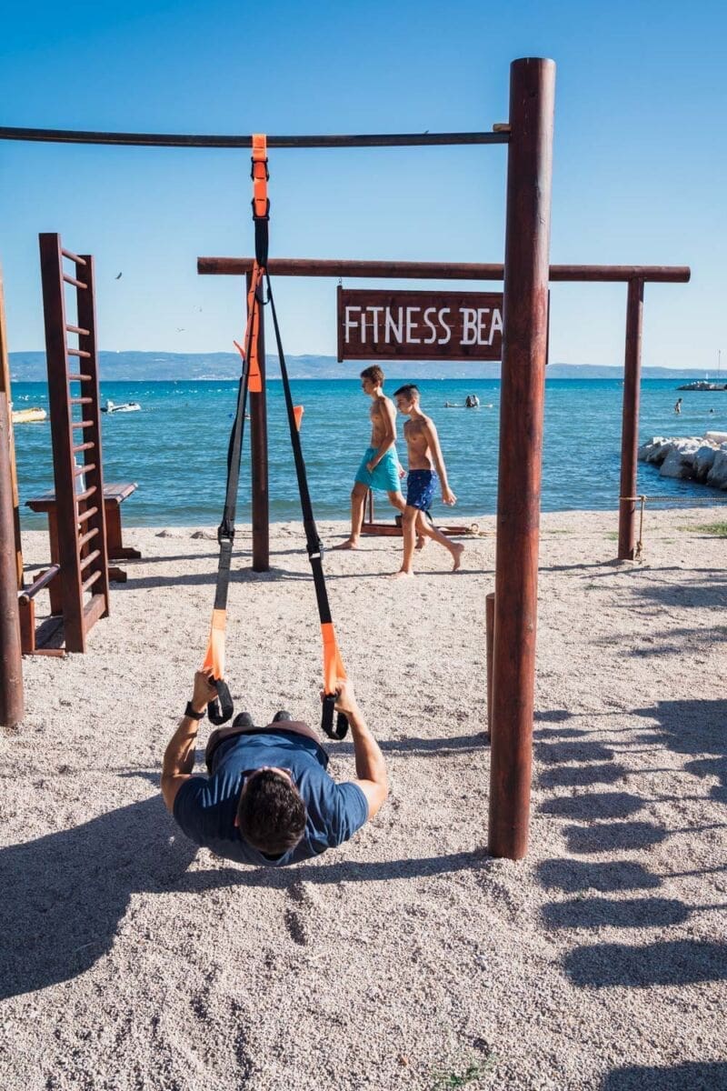 Dolaskom smo po prvi puta vidjeli teretanu nasred plaže, gdje korisnici mogu vježbati na svježem morskom zraku s pogledom na more. Osim što ćete vježbati u potpuno prirodnom okruženju s utezima i spravama od drveta, na raspolaganju vam stoji i mogućnost treninga u moru.