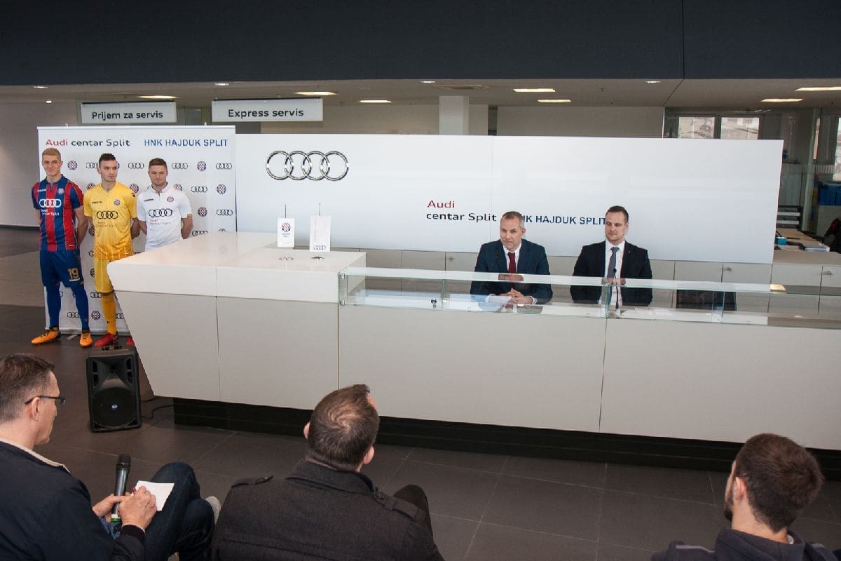 Ugovor su u prostorijama Audi centra Split potpisali predsjednik Uprave HNK Hajduk Ivan Kos i Ivan Kovačić, član Uprave Autokuće Kovačić. Audi centar je pod vodstvom Autokuće Kovačić koja je ovlašteni prodajno-servisni Audi partner za Splitsko - dalmatinsku županiju.