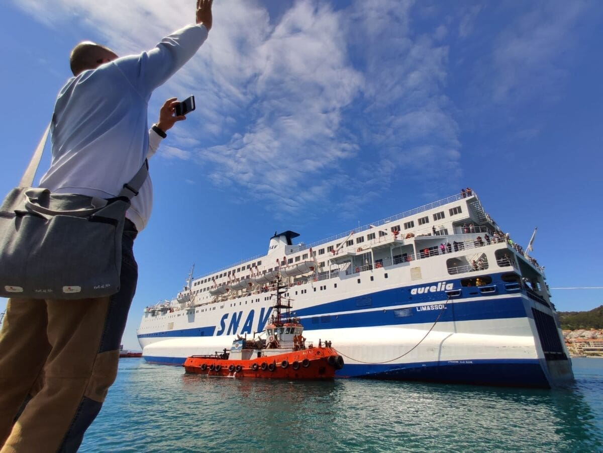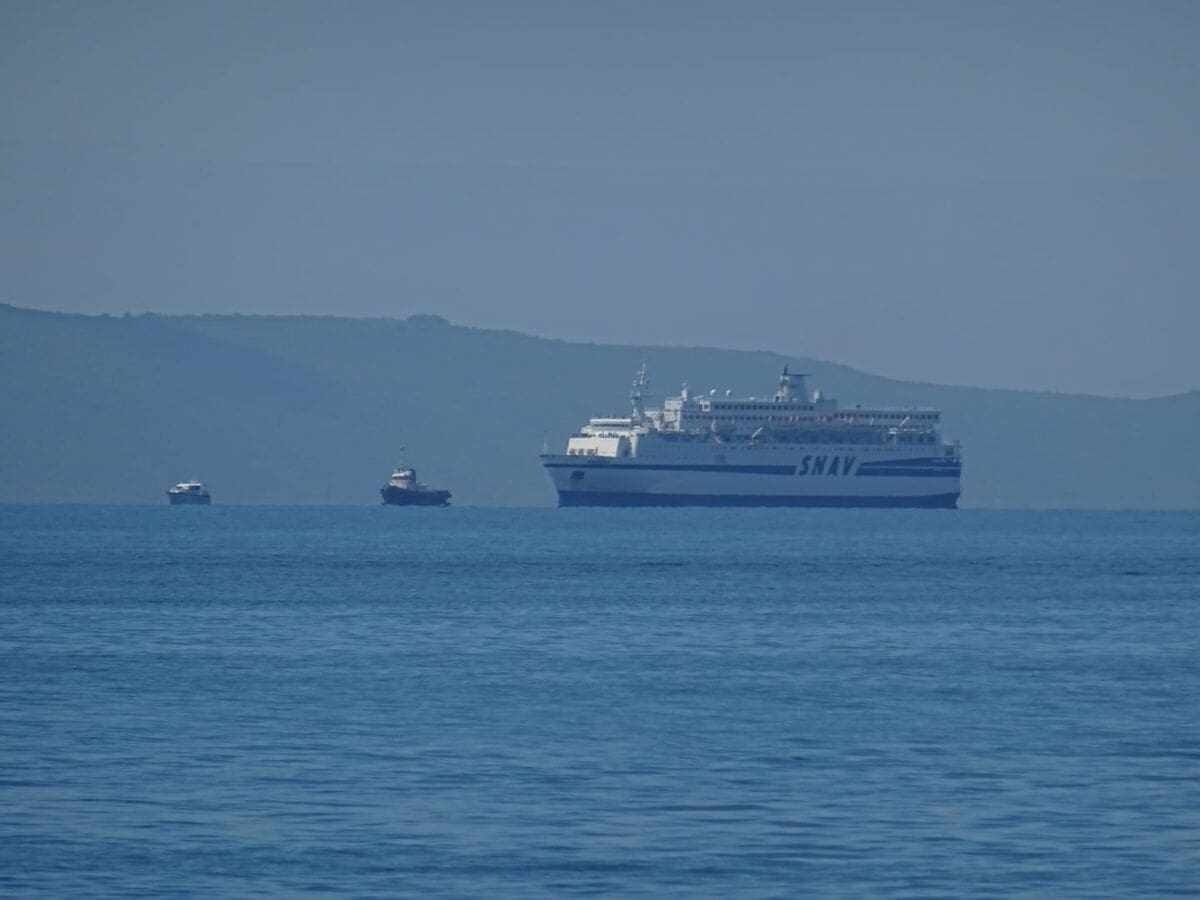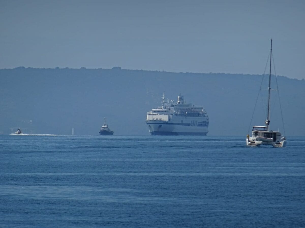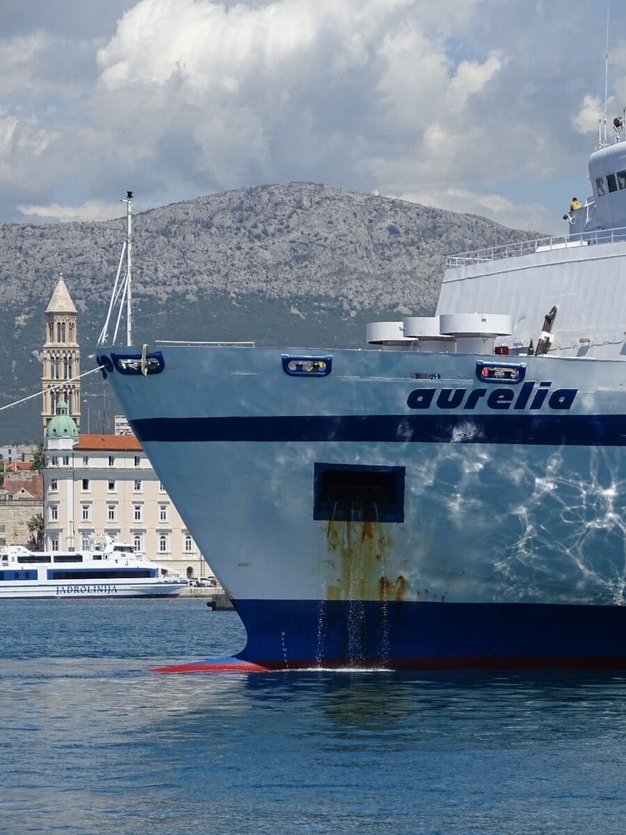 Feribot talijanske brodarske kompanije SNAV “Aurelia”; koji plovi na liniji Ancona-Split, sredinom dana se nalazi pred samim gradom nakon cjelodnevne drame na otvorenom moru, gdje je tegljenje otežavalo jako jugo. U ranim popodnevnim satima konačno je uplovio u splitsku gradsku luku.