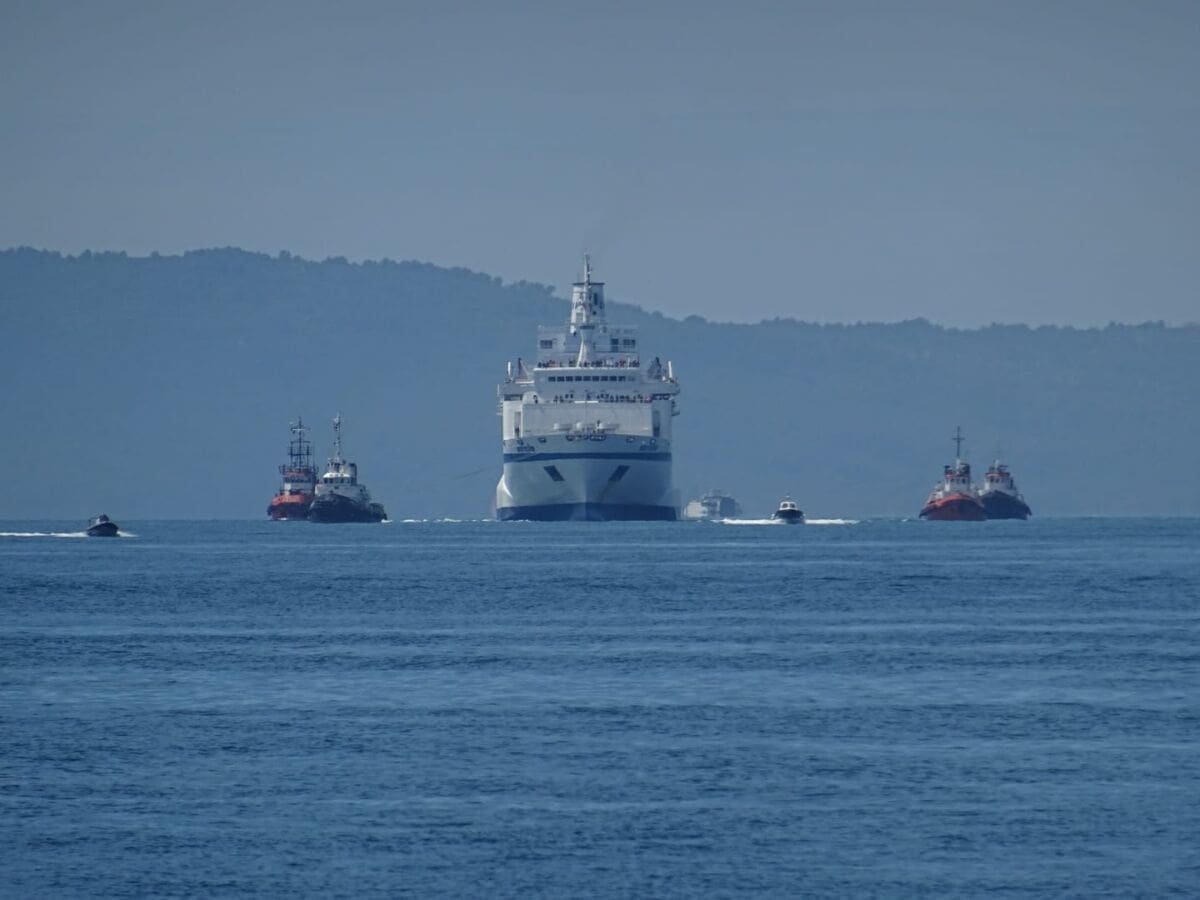 Podsjetimo, Aurelia je preksinoć oko 20:30 isplovila iz Ancone i trebala je jučer oko sedam sati uploviti u Split. No tijekom noći feribot je ostao bez pogona. U ranim jutarnjim satima brod je dotegljen u Splitski akvatorij, a pred samim gradom su ga teglili četiri tegljača Brodospasa: Kastor, Alkaid, Rigel i Argus.