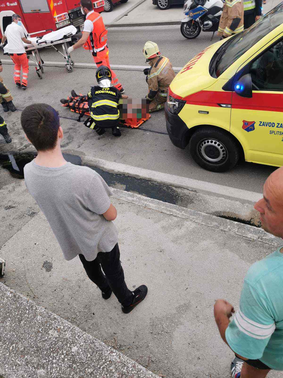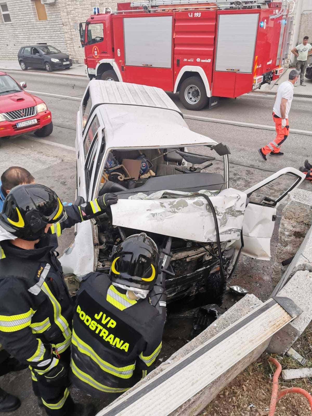 Na mjesto događaja stigli su vatrogasci, policija i hitna pomoć. Jedna osoba je ozlijeđena, te je hitno prebačena u splitsku bolnicu.