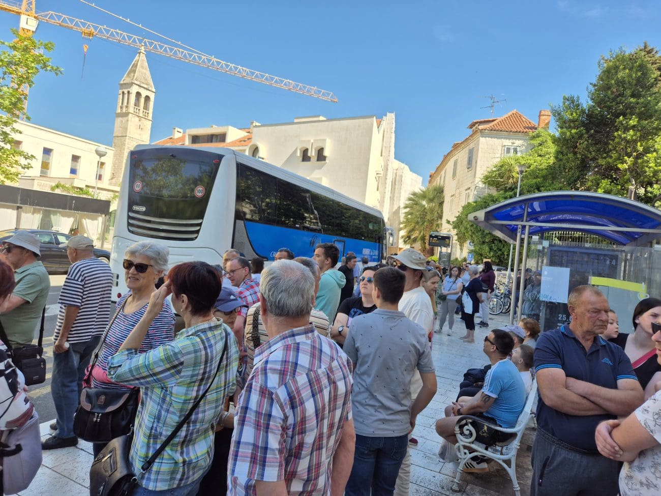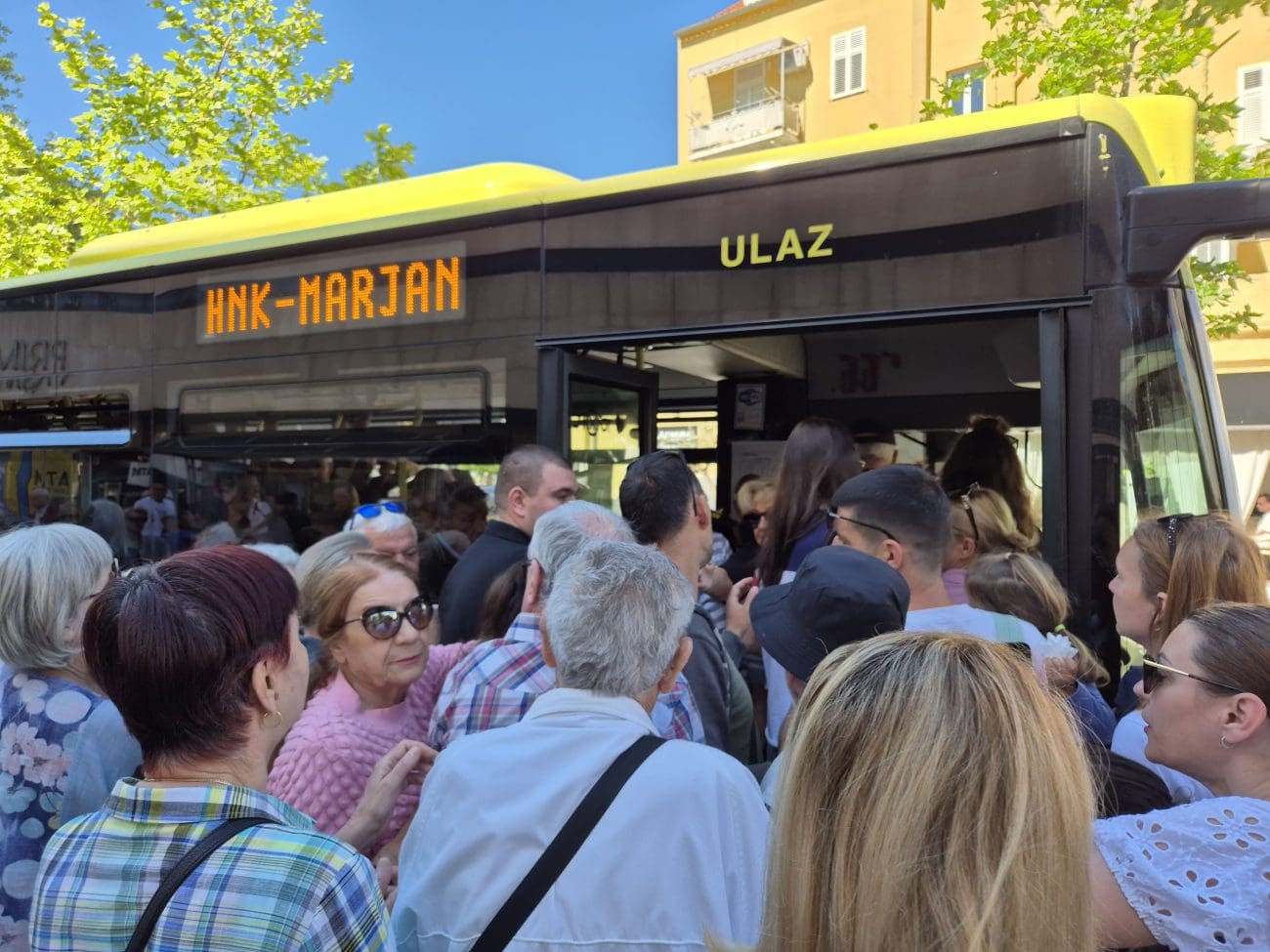 Prva linija krenula je već u 8 sati, no tada nije bilo gužve, možda nekoliko putnika po autobusu. U 10 sati, sve se promijenilo, Splićani su navalili na prijevoz, a scene itekako podsjećaju na prošlogodišnje.