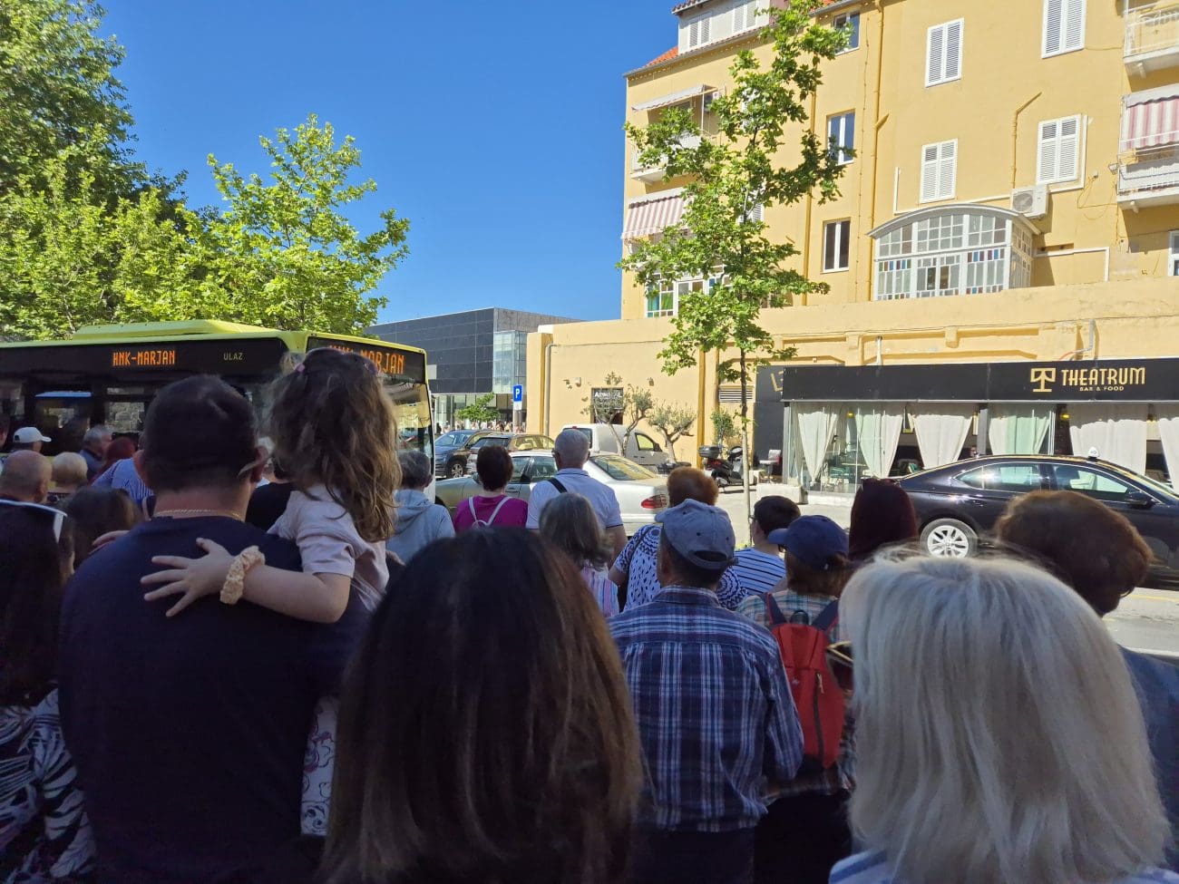 Stampedo, naguravanje, vika, molbe za još kojim mjestom - sve se to moglo čuti oko 10 sati. Među prisutnima su i neki koji nastupaju na zabavnom programu, koji su možda trebali i malo ranije krenuti ako su htjeli izbjeći gužvi.