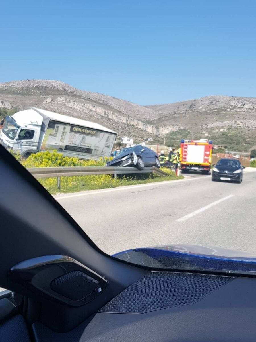 Na trogirskoj obilaznici, cesta D-8, došlo je do oko 14 sati i 20 minuta prometne nesreće između teretnog vozila i osobnog automobila marke Peugot. Liječničku pomoć zatražile su tri osobe, vozač kamiona te vozač i suvozač osobnog automobila, a trenutno nije poznata težina njihovih ozljeda. Prema prvim informacijama nema životno ugroženih.