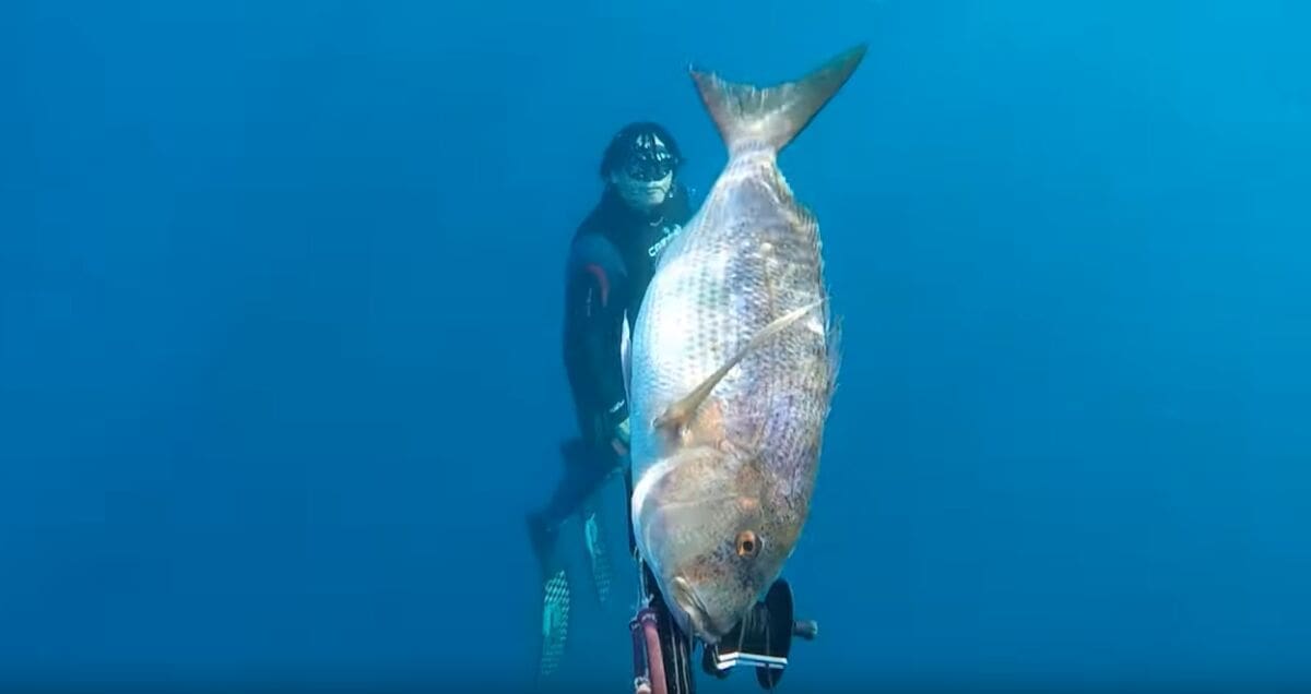 Odjednom se jedan zubatac odlučio krenuti prema meni i okrenuo se tek na samom rubu dometa puške. Opalio sam prekidač, strijela je samo djelomično penetrirala ribu u blizini kičme. Kako se počela panično micati, strijela se otkačila. Dezorijentirana i malo ozlijeđena riba, brzo se vrtila u krug, pa sam prema njoj krenuo velikom brzinom, pokušavajući je uhvatiti rukama. Uhvatio sam je prvim pokušajem čvrstim zagrljajem, kako ne bi mogla pobjeći. Nije je bilo lako držati na mjestu, jer je skliska i svom snagom se pokušala osloboditi. A bilo me je i donekle strah ugriza, jer sam ju morao držati na rubu glave, gdje su joj usta.