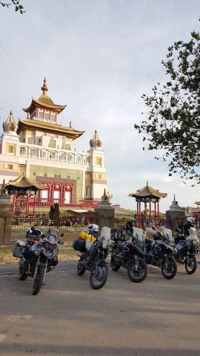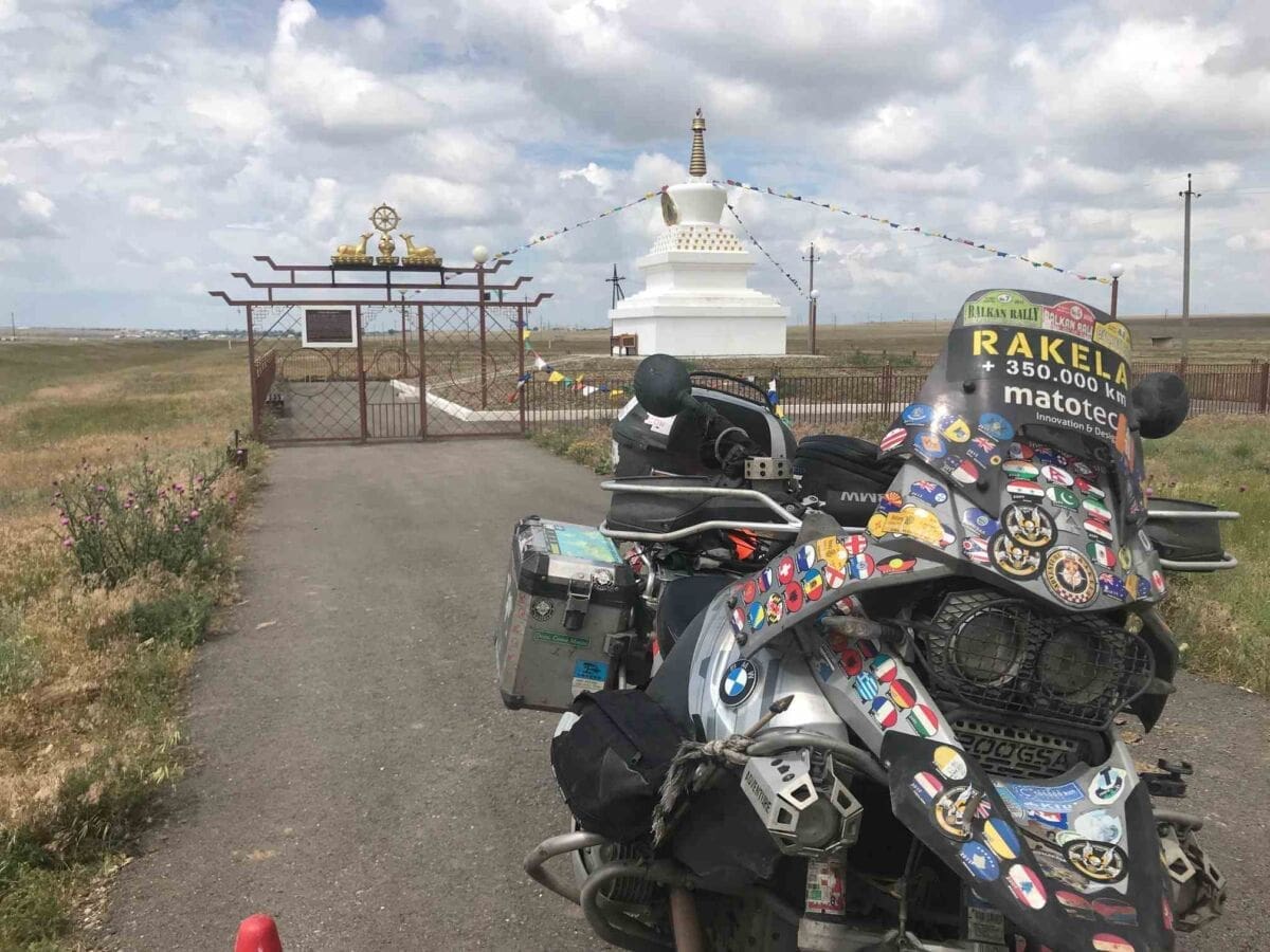 Krenuli smo oko 10 sati prema Volgogradu. Jedno vrijeme nas je uhvatila kiša, ali vrlo kratko, jer oblaci su se doslovno odvojili nalijevo i nadesno pa nismo kisnuli. Pomislio sam tada da ova amajlija stvarno djeluje. U jednom trenutku sam s lijeve strane uočio budističko svetište i odlučio da stanemo i poslikamo se pored njega. U tom slikavanju i snimanju Jure Marasović primijeti da mu se brokva zabila u stražnje kolo. Odlazimo do prve bezinske stanice koja je 10 m udaljena od naše pozicije i tamo ekipa već počinje vaditi set za krpljenje guma. Moje pravilo je „ne krpi sam gumu, jedino ukoliko nema vulkanizera u blizini“. Upitam jednog Mongola koji taman ulijeva gorivo ima li u blizini vulkanizer, a on pokaže garažu udaljenu 20 m od nas te se skupa s nama odveze do vulkanizera. Krpljenje crvom ili injekcijom je trajalo 5 min i vulkanizer je htio naplatiti uslugu 10 kn, međutim Jure mu je dao 100 kn i nastavljamo dalje prema Volgogradu.