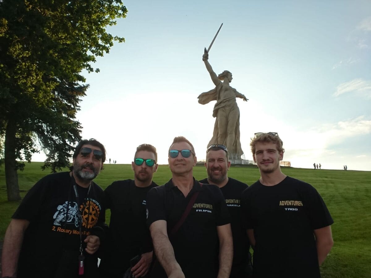 Stajemo na samom ulazu u Volgograd da se slikamo te odlazimo naći hotel. Grad ima oko 1.200.000 stanovnika i jedan je od najdužih gradova na svijetu: dug je 135 km. U prvom hotelu kad su me vidjeli onako u moto opremi rekli su da je hotel pun, iako nije bilo nikoga na parkingu hotela. Zato u sljedeći hotel šaljemo najmlađeg i najlipšeg kolegu Andriju Trgu. On je naravno skinuo kacigu, jaknu i malo se poredio te je uspio dobiti sobe u samom centru po cijeni od 40€ po osobi.