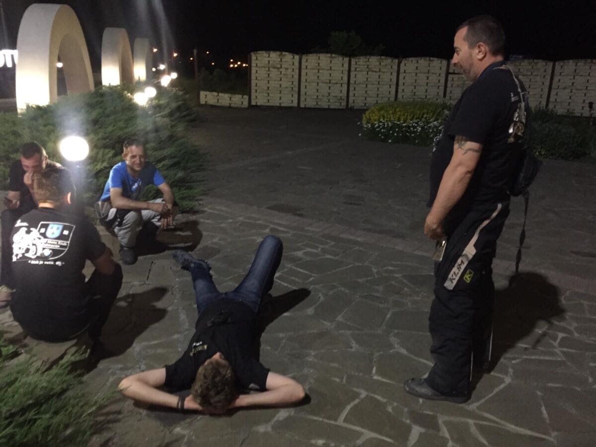Na ukrajinskoj granici pumpamo gumu 2 puta tijekom pretresa i provjere putovnica i taman dolazimo na zadnji punkt. Na mojoj desnoj strani nema nikoga nego je par vojnika na lijevoj strani pored kontrolne kućice. Pitam ih treba li tu doći, oni ništa ne odgovaraju nego me samo gledaju, a ja to shvatim kao potvrdni odgovor. Dolazim ispred njih, kad jedan od njih, najmanji, počne vikati i nabrajati nekakav granični prekršaj, govori jako glasno i brzo, ništa ne razumijem. Samo vidim njegove kolege kako umiru od smijeha naoružani dugim cijevima. Kažem mu da smo umorni od pretresa i čekanja na granici te da je prijatelju probušena guma, a on opet o zakonu Ukrajine, prekršili pravilo itd. Uglavnom hoće reći da sam morao stati desno a ne lijevo, da sam 3 m ušao u kontra smjer te da hoće svima pisat kaznu ili da mu dam nešto para. Oštro sam ga odbio u toj namjeri, ali onda je počeo vikati i tražiti putovnice sviju te se prijetiti da ćemo sad ostati još 2 sata dok ne ispiše kazne. Njegovi kolege nas gledaju i umiru od smijeha. Nije bilo druge nego mu dati 50$ i tek onda nas je pustio.