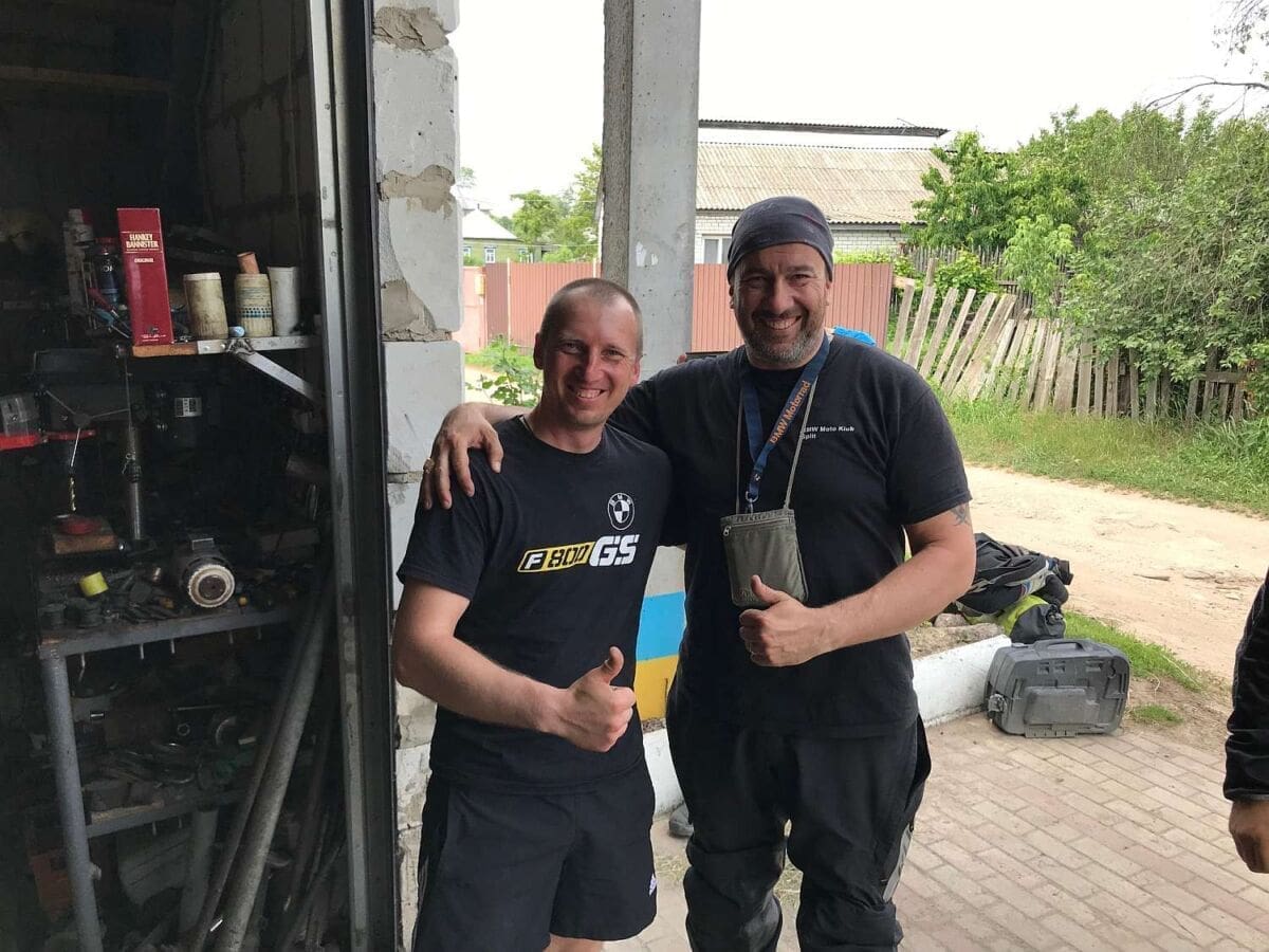 Čim sam ušao na ukrajinski teritorij vidio sam motoristu Ukrajinca koji ide u Rusiju. Zaustavim ga, kažem mu za problem i on mi daje kontakt svog prijatelja koji je u sljedećem većem gradu 30-tak km od granice. Nazovem ga, objasnim mu problem i on kaže da nas čeka kod sebe kući. Ima garažu i kaže da će nam riješiti problem, samo da požurimo jer mora danas na put.