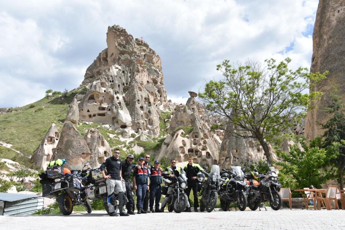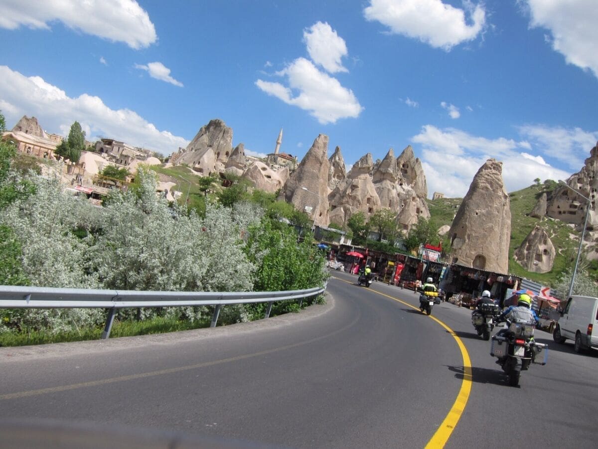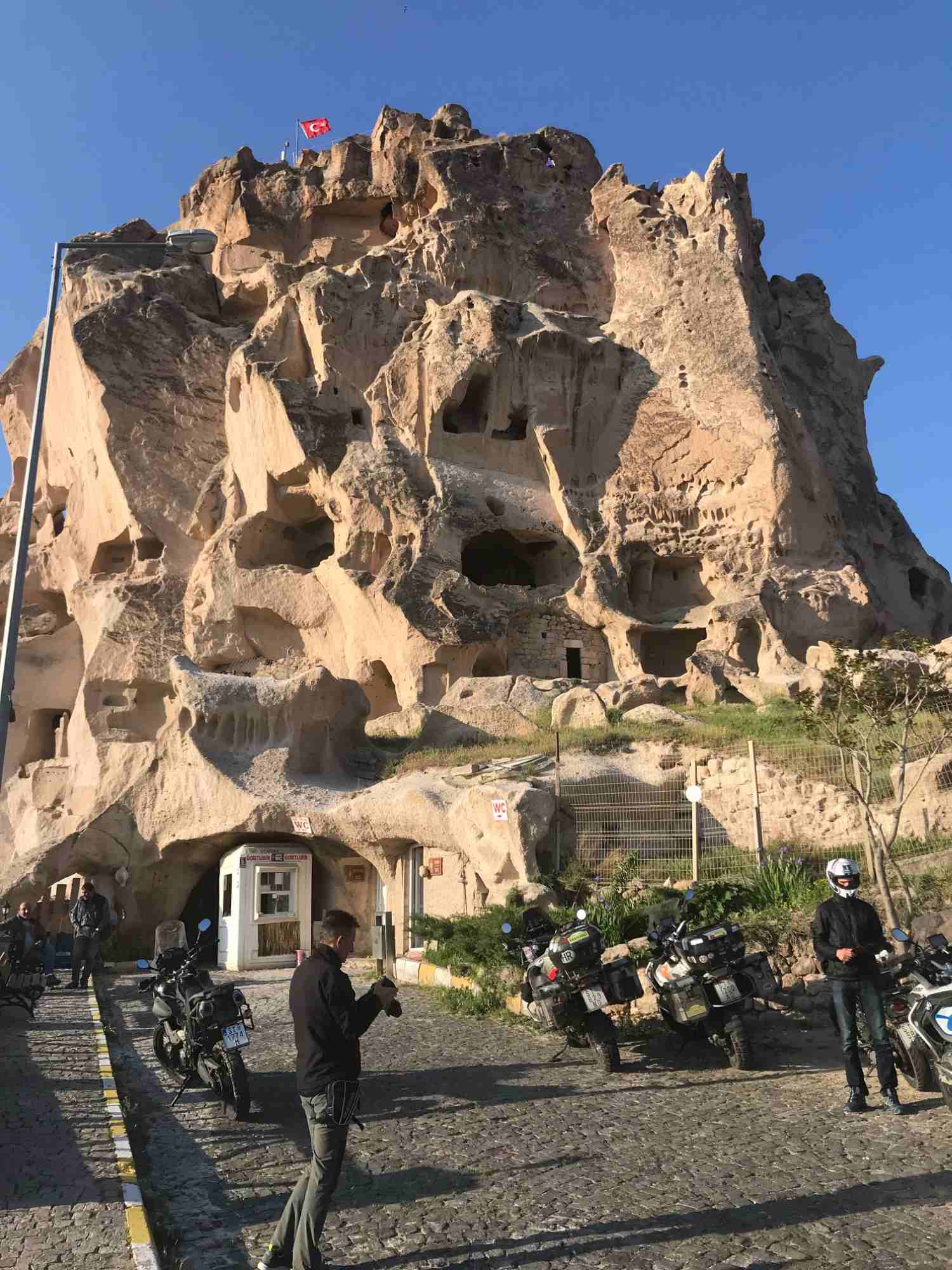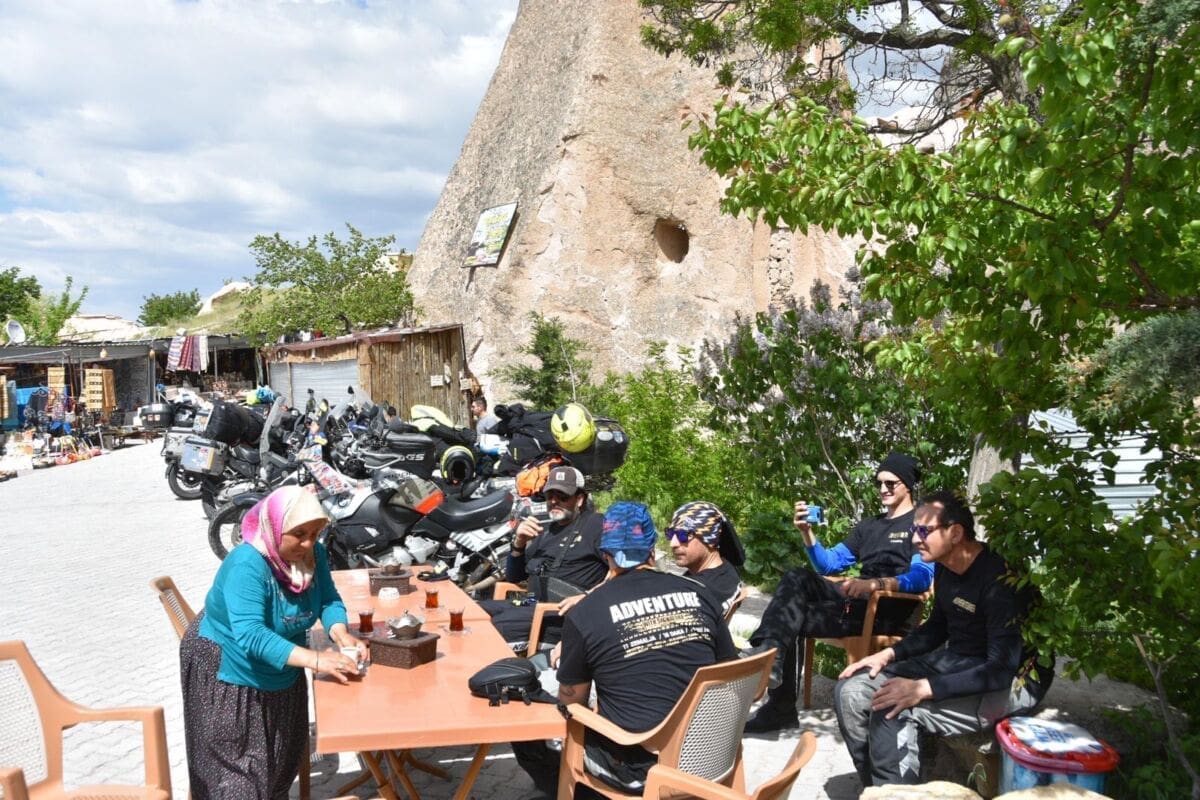Nakon pauze od sat vremena krećemo dalje za Kapadokiju, do koje nas vode lijepe ceste kroz predivnu prirodu na preko 1.000 metara nadmorske visine. Prvo ih vodim na lokaciju Goreme gdje parkiramo motore i vodim ih u obilazak i pokazujem ostatke hotela gdje smo moja supruga i ja spavali 2009 god. Na istom mjestu nailazim na prodavača suvenira koji još uvijek radi isti posao. To je gosp. Zalimin Yeri, koji je 2009. godine poklanjao mnoge suvenire mojoj Ivani. Nakon fotografiranja odvodim ekipu na još par lokacija da pogledaju predivna čuda prirode u Kapadokiji.
