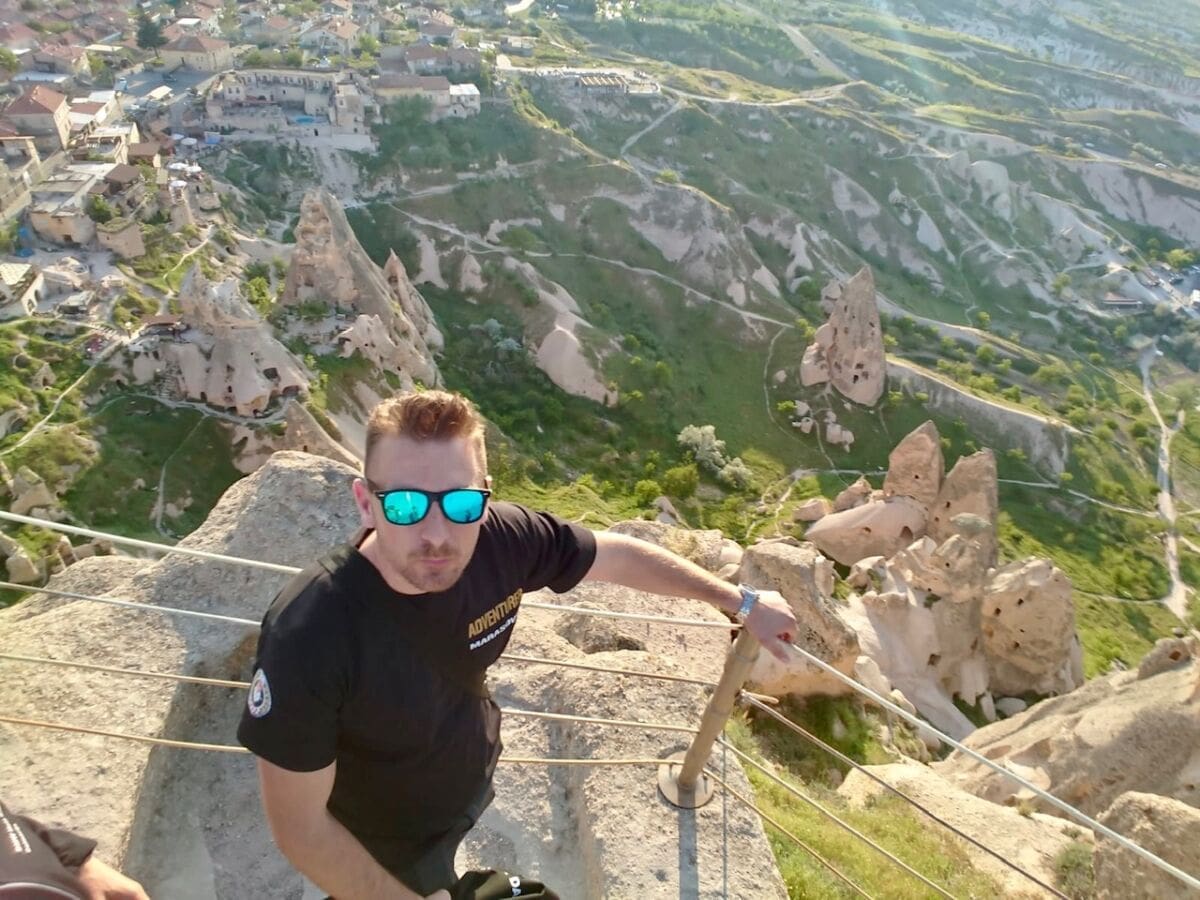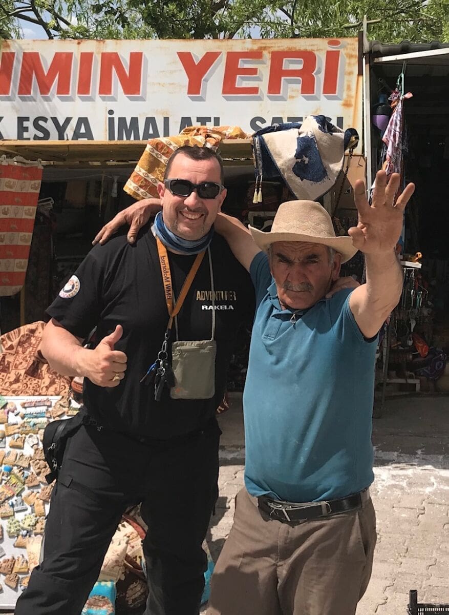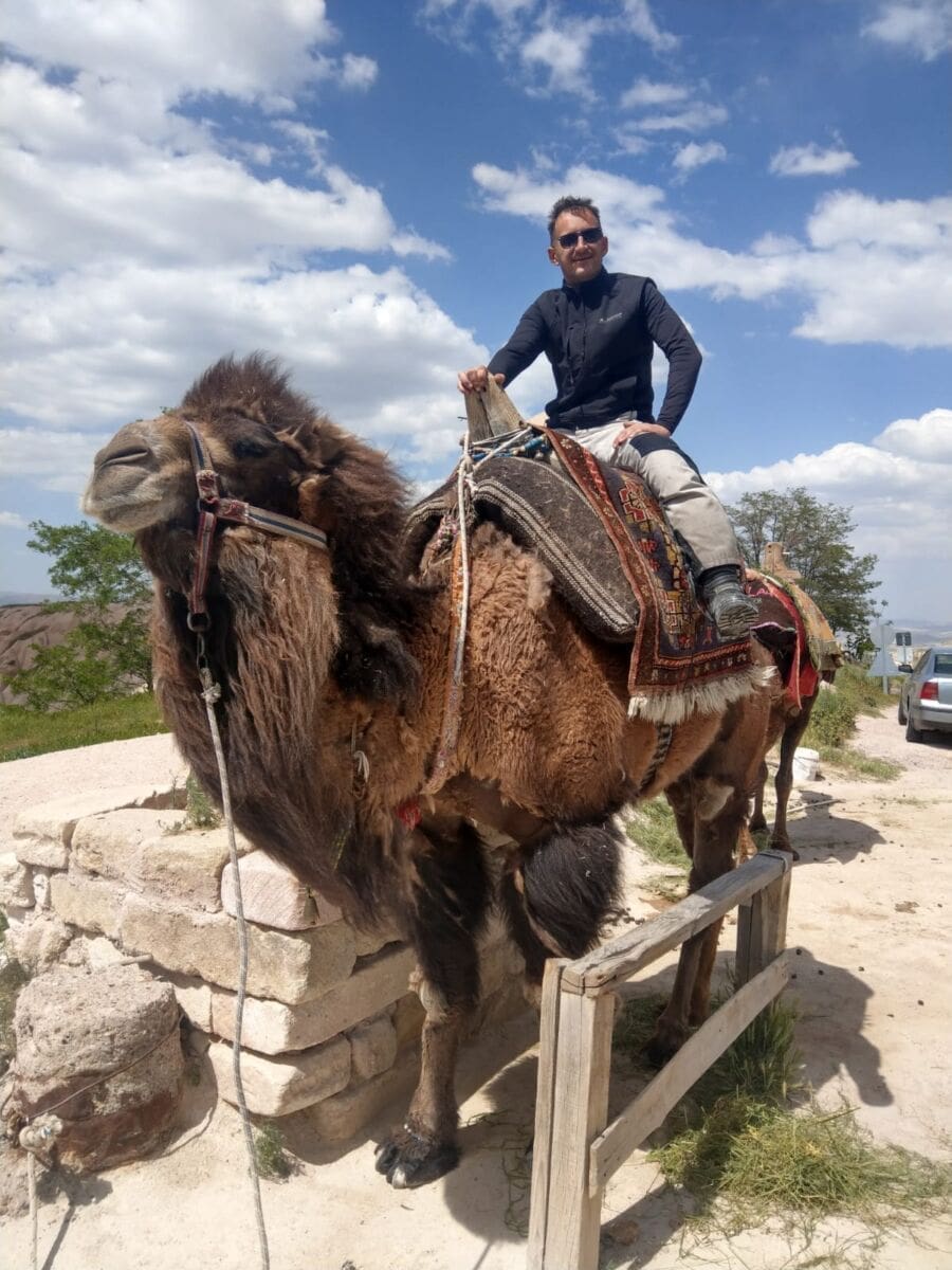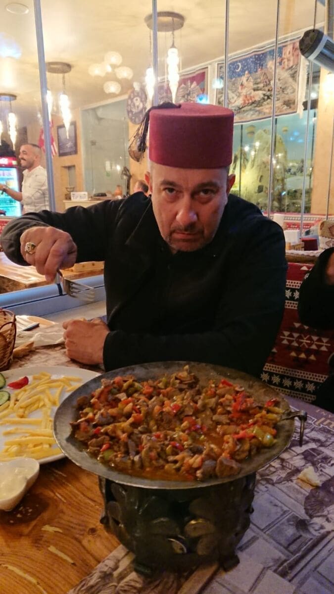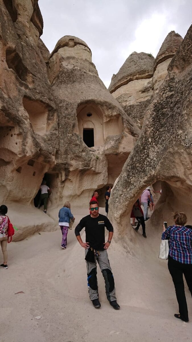 Nakon pauze od sat vremena krećemo dalje za Kapadokiju, do koje nas vode lijepe ceste kroz predivnu prirodu na preko 1.000 metara nadmorske visine. Prvo ih vodim na lokaciju Goreme gdje parkiramo motore i vodim ih u obilazak i pokazujem ostatke hotela gdje smo moja supruga i ja spavali 2009 god. Na istom mjestu nailazim na prodavača suvenira koji još uvijek radi isti posao. To je gosp. Zalimin Yeri, koji je 2009. godine poklanjao mnoge suvenire mojoj Ivani. Nakon fotografiranja odvodim ekipu na još par lokacija da pogledaju predivna čuda prirode u Kapadokiji.