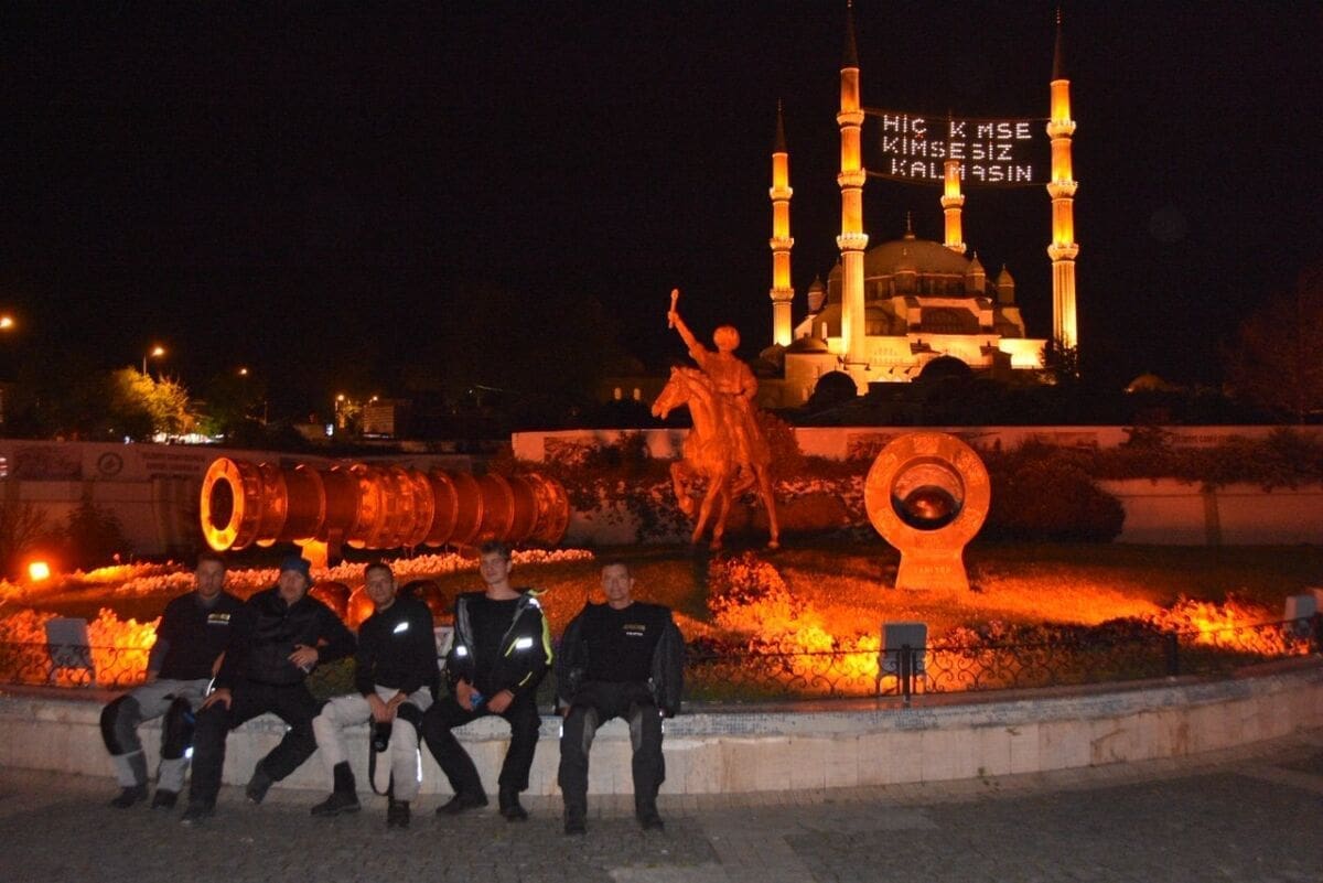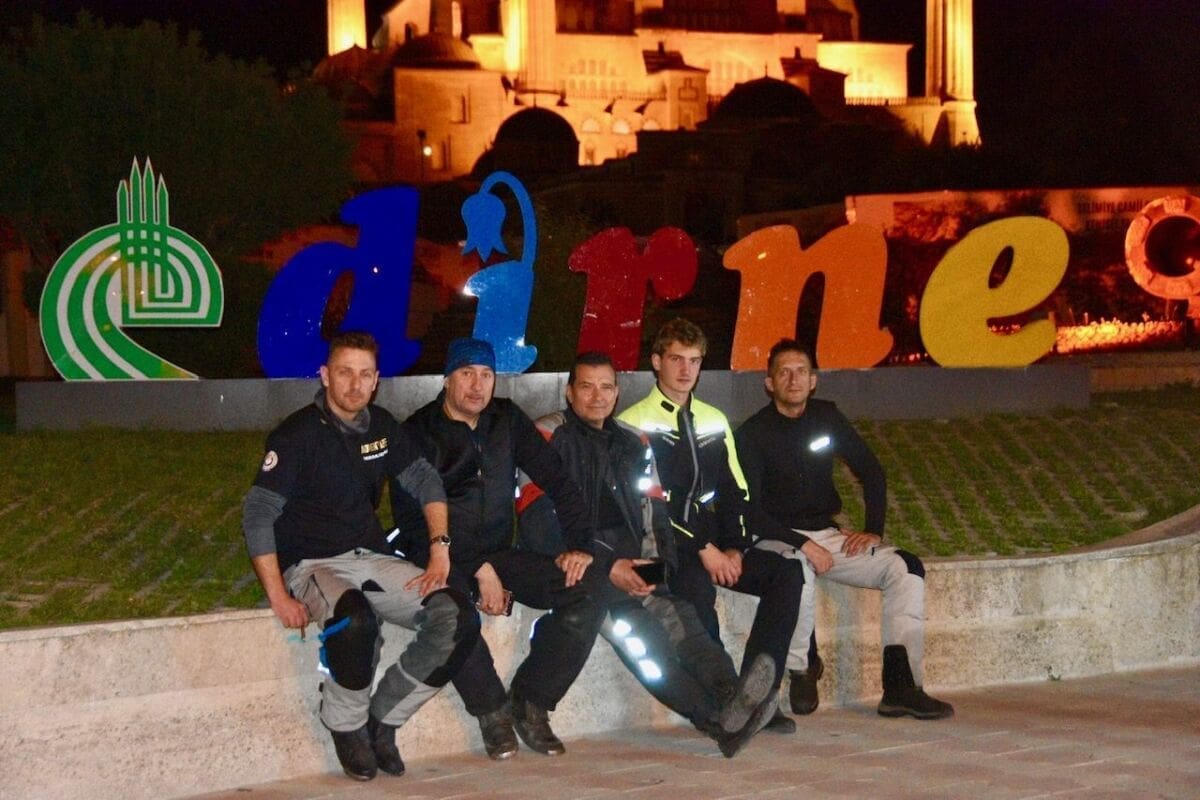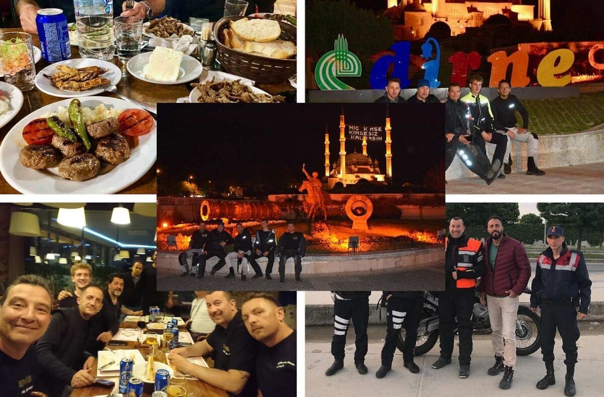 Nakon par kilometara se zaustavljamo na benzinskoj stanici i uzimamo vinjete za motore u vrijednosti od 15€ za vožnju po cijeloj Turskoj. Po planu dolazimo u 19 sati u Edirne, a tamo predivan hotel koji je Budinjaš našao za cijenu od 20€ po osobi s doručkom, sobe su od 50m2. Prije nego smo se smjestili, odlazimo u centar na večeru. Jeli smo u restoranu koji je u strogom centru, a na meniju je bila juha, teleća džigerica, ćufte, salata, sir, kolač, čaj i puno Pepsija. Sva večera za nas 7 je koštala 570 kn, a večerom nas je počastio Budinjaš. Nakon večere i punih želudaca otišli smo se prošetati centrom i napraviti par fotografija.