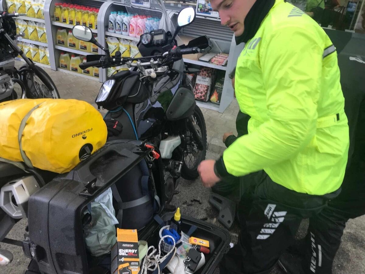 Moram spomenuti da na ovom putu testiram i specijalne čarape koje sam dao da mi naprave baš za motorist. Iz iskustva znam kad idem na put moram nositi 15-tak čarapa, a sada za put od 20 dana samo 2 para i što je interesantno, čarape ne smrde, kompresirane su, od lakosušećeg materijala i imaju podebljanja na lijevom palcu za mijenjanje brzina te skriveni džep u svakoj po jedan za sakriti novac.