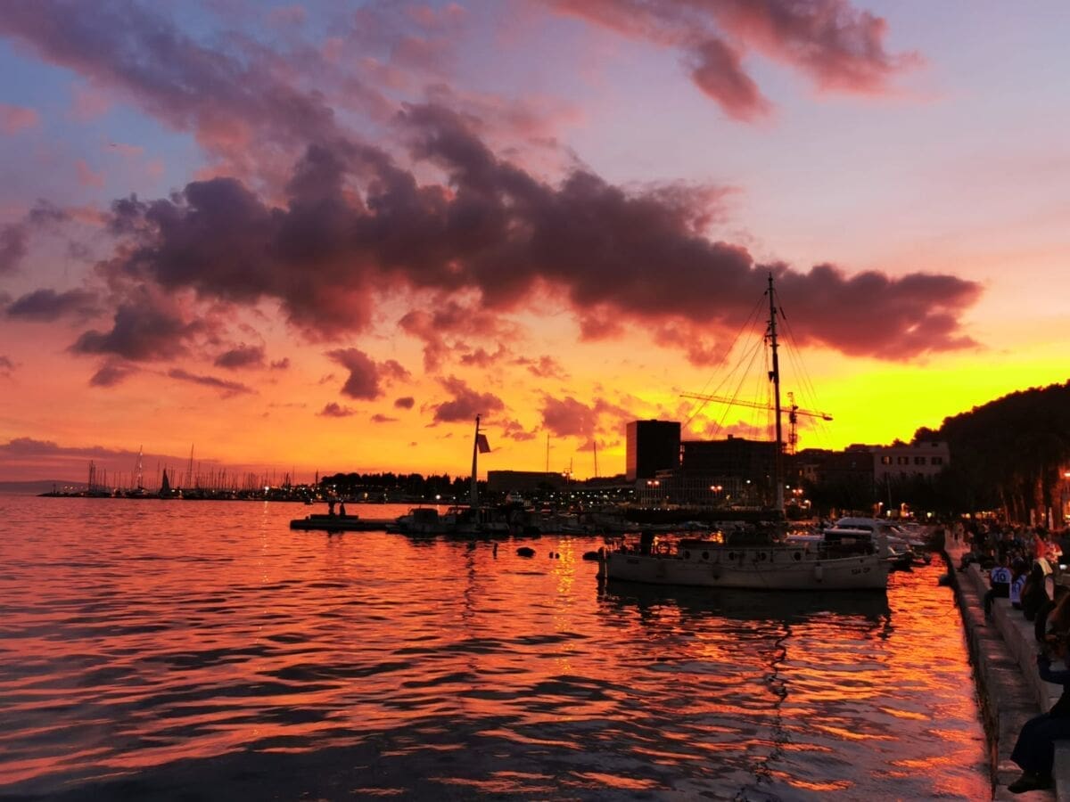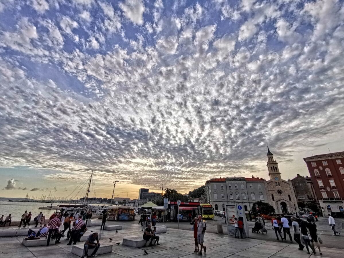 Brojni Splićani i njihovi gosti koji se spremaju za večerašnji spektakl na Poljudu mogli su uživati u prekrasnom zalasku sunca, koji su 'potpalili' oblaci tipa cirokumulus.