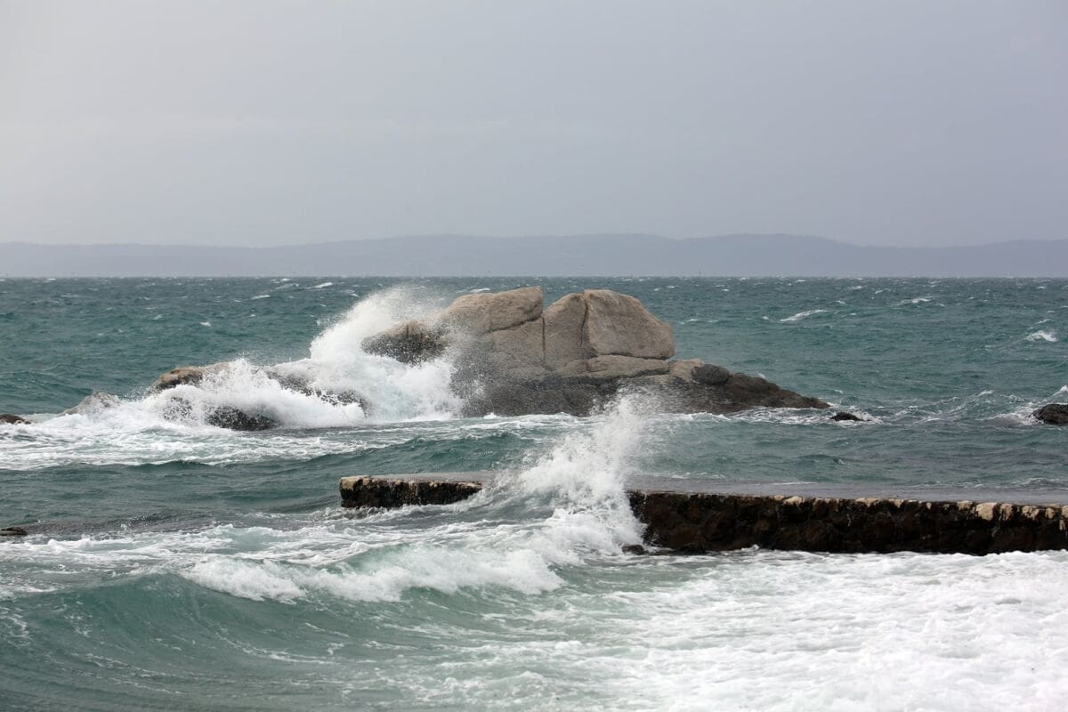 Temperatura zraka kretala se između 14 i 16 stupnjeva, dok je najjači udar juga bio 97 km/h.