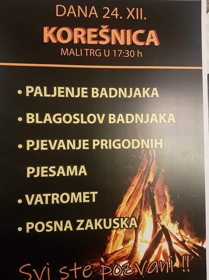 U orgnizaciji mladih Žrnovnice, s početkom u 17.30 u centru Korešnice, bit će upriličen još jedan Badnjak.