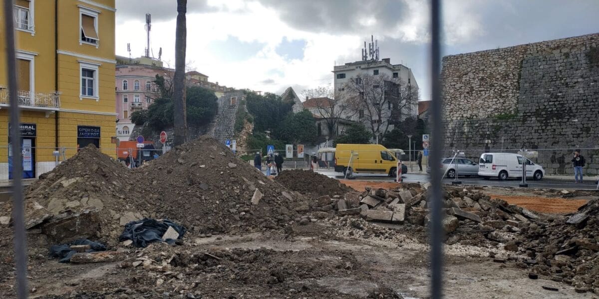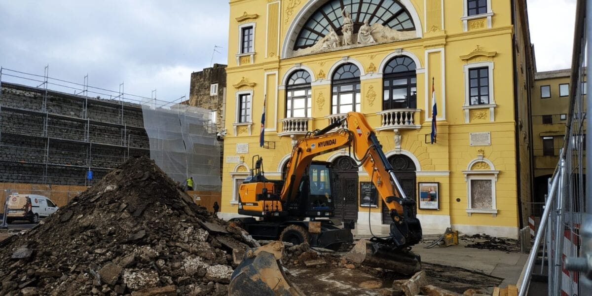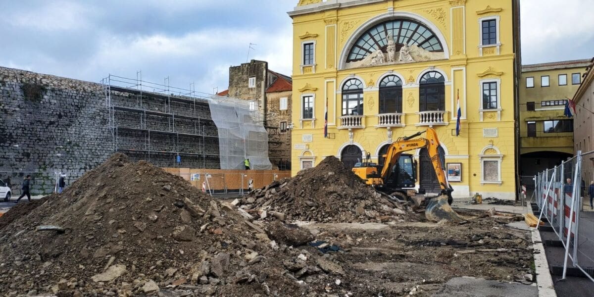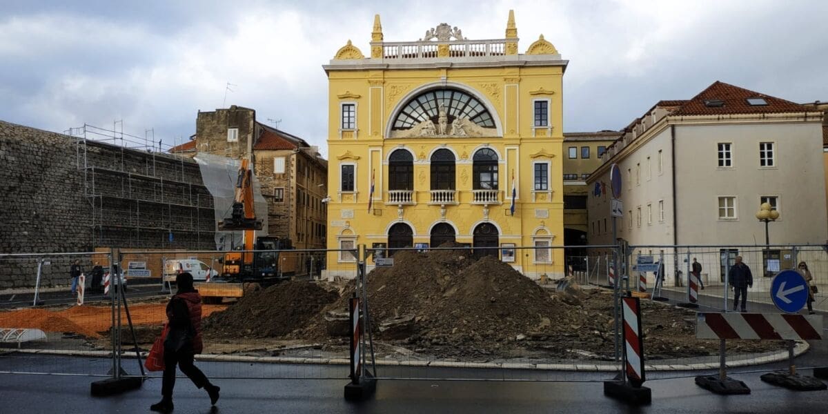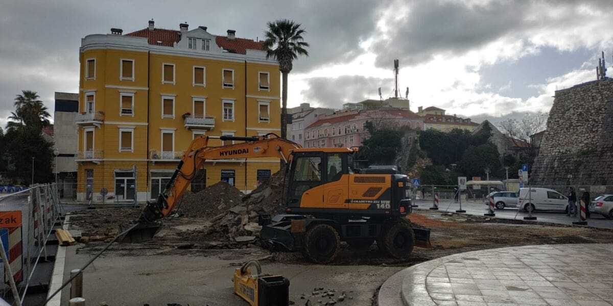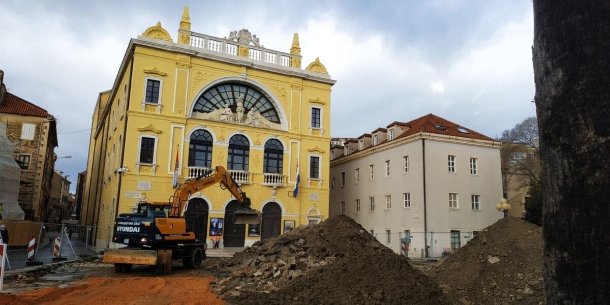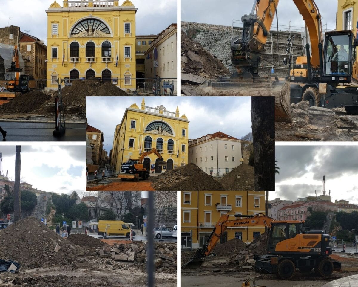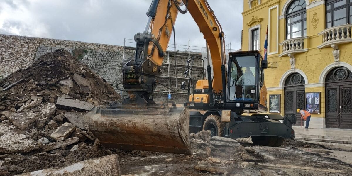 Radovi na uređenju Trga Gaje Bulata počeli su uklanjanjem asfaltnog sloja prije koji dan, a jutros je pred zgradom splitskog kazališta bager radio punom parom.