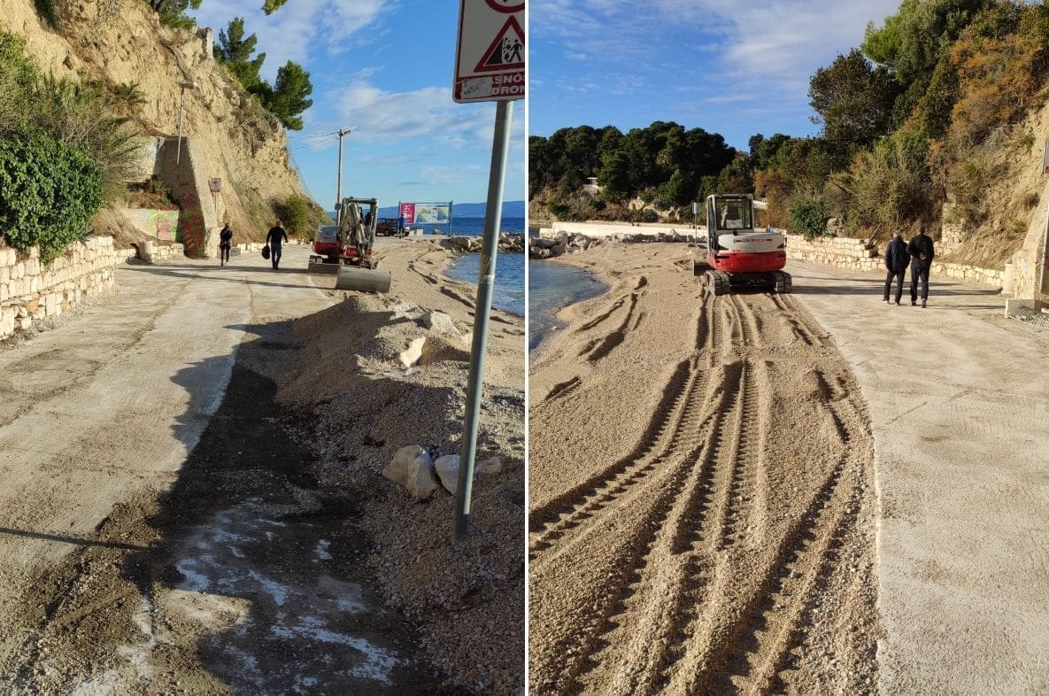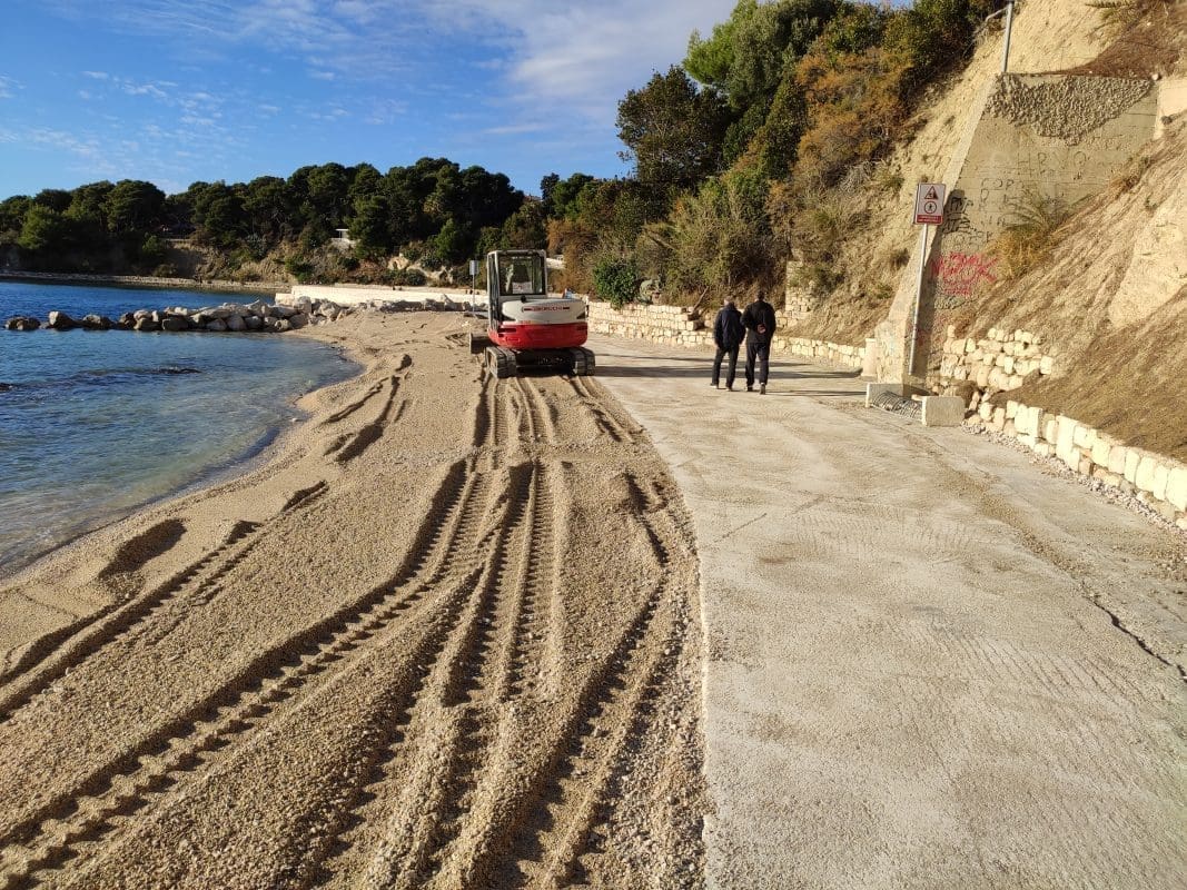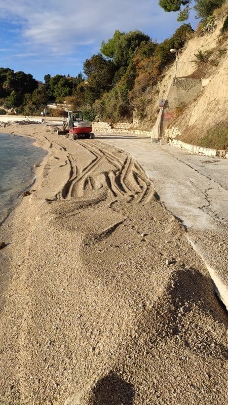 Međutim, danas drugačija slika. Vrijedni bagerist od jutra radi na ravnanju plaže. Kazao nam je da će raditi i sutra.