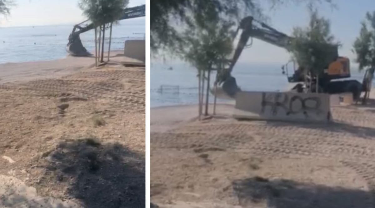 Bageri su okupirali popularno splitsku plažu, i dok se brojni građani pitaju što se događa, doznajemo da je riječ o obnavljaju gradskih plaža.
