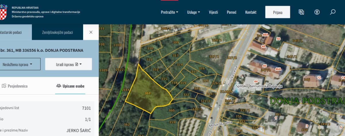 Šarić najvjerojatnije "samo uređuje put do svoje parcele". Naime, osim radova na navedenoj parceli vlasnik je i susjedne male parcele 322 u nizu koja vodi do također njegove parcele 361 površine gotovo 1.300 m2 sa statusom nerazvrstane poljoprivredne površine uz obalu Žrnovnice, odnosno javnog dobra u općoj uporabi pod upravom Hrvatskih voda.