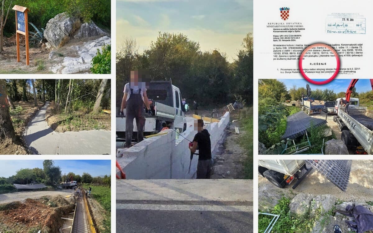 Bez obzira na doneseno rješenje, uvjerili smo se da su se radovi danas nastavili i to pojačanim intenzitetom. Betoniran prilaz s ceste i cijelo područje tek centimetar udaljeno od zaštićenog kulturnog dobra. Radi se o značajnom zahvatu u prostoru koji seže sve do šetnice uz rijeku Žrnovnicu, a na gradilištu nema postavljene table, što zakonska obveza investitora sukladno odredbama Zakona o gradnji. Bit će zanimljivo vidjeti što o svemu kaže i Služba za zaštitu okoliša i vodopravna inspekcija.