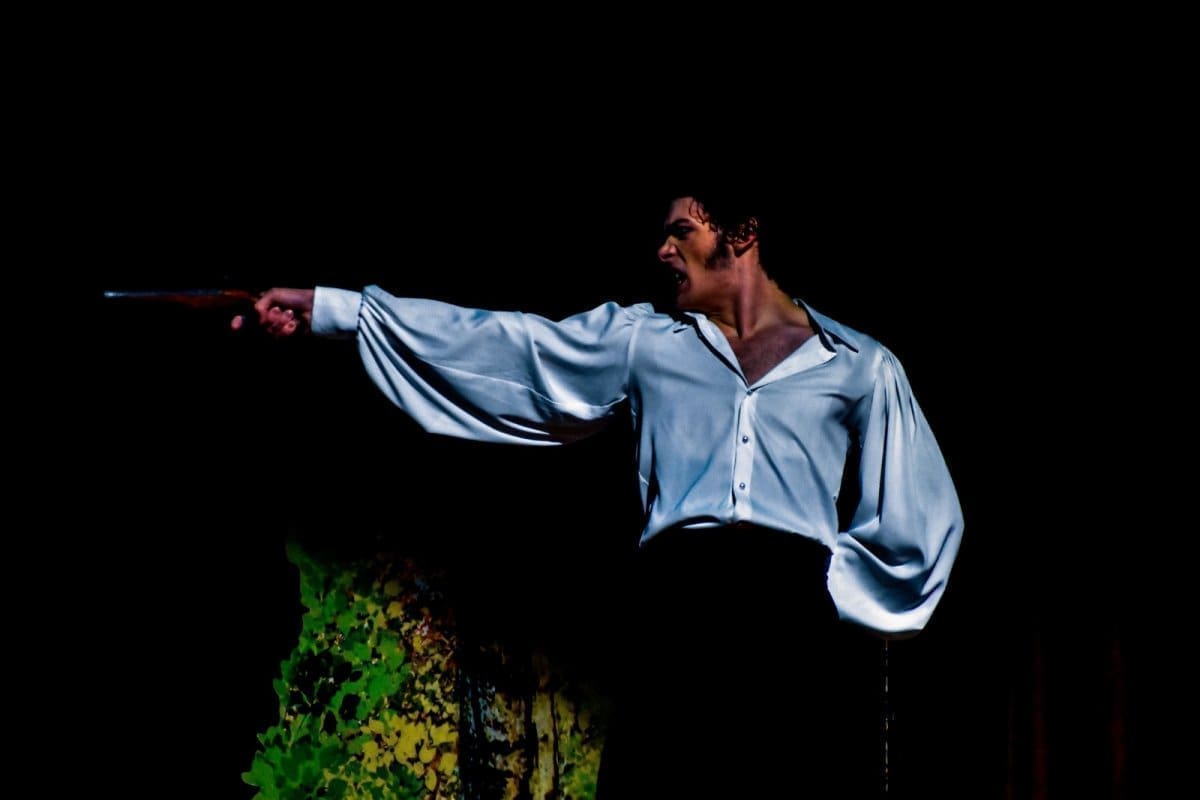 Splitski „Onjegin“, u još jednoj fantastičnoj izvedbi Aubina Le Marchanda, čovjek je pretopljen emocijama – najčešće neprimjerenima, ili iskrenima – u pogrešno vrijeme. Iako mu ljupka Tatjana svojim pismom, ponižavajući se i više nego što je za ono vrijeme bilo očekivano, izjavljuje ljubav, Onjegin je isprva odbija. Kasnije mu pozornost godi, no u suludu ljubavnom četverokutu s Tatjanom (Eva Karpilovska), njezinom sestrom Olgom (Irene Tomasseti) i prijateljem Lenskim (Aaron Kok) potonjeg toliko isprovocira da se slučaj ne može razriješiti nego dvobojem – ironično, onako kako je poginuo tvorac djela.