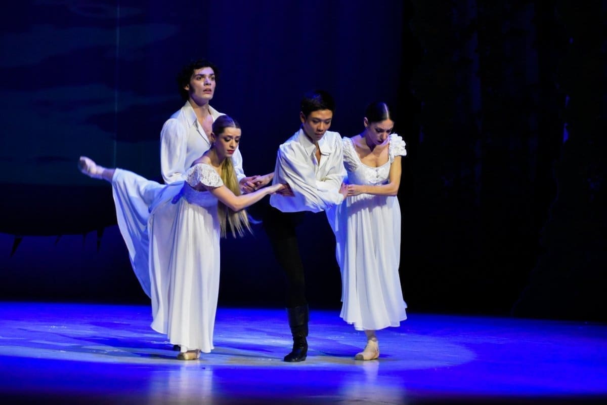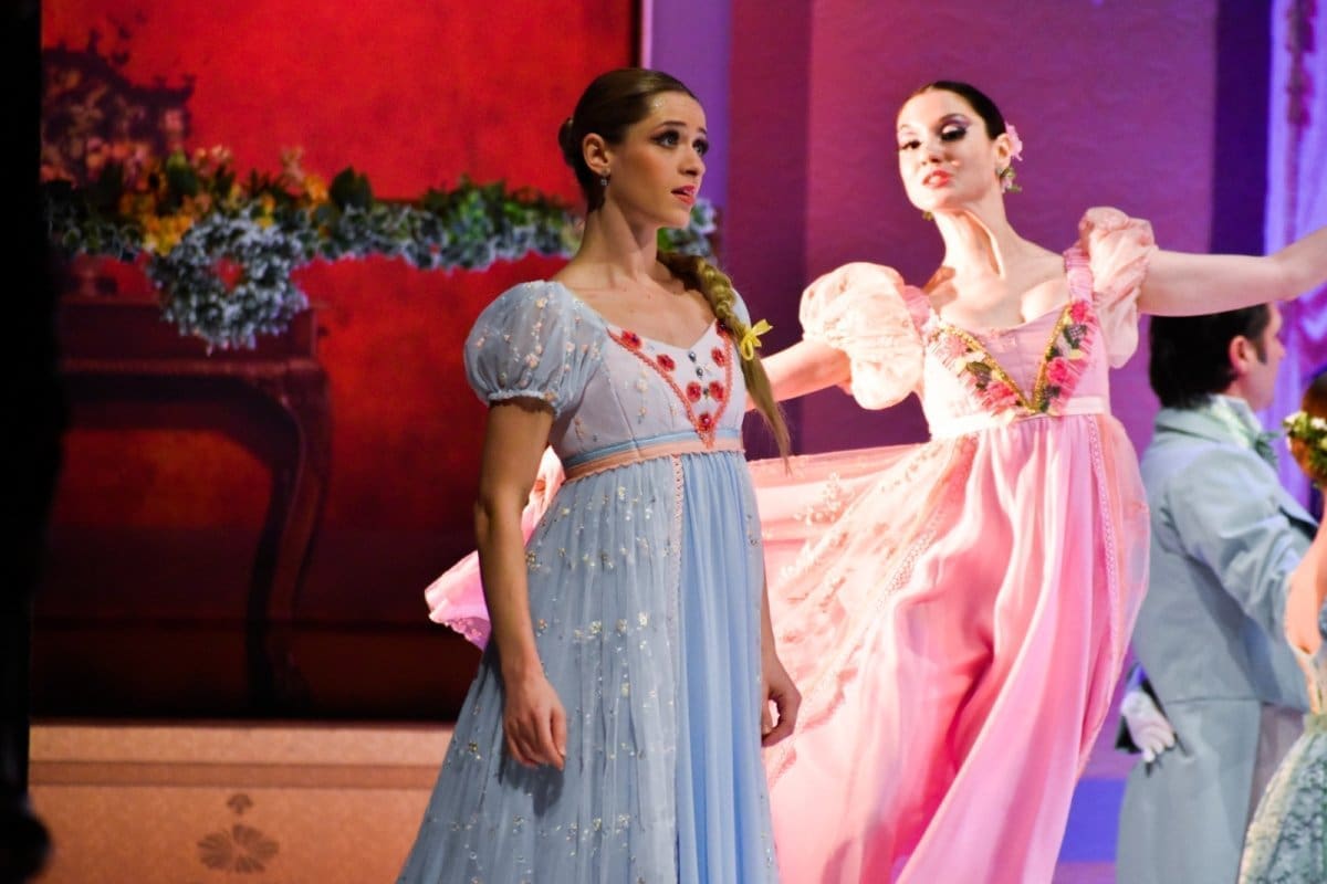 Baletni su solisti bili na visini izuzetno teška zadataka, pogotovo sjajna Eva Karpilovska koja je u kratkom vremenu uskočila u cipele svoje iskusnije kolegice Irine Čaban Bilandžić. Iz svakog pokreta Karpilovske odiše radna etika – u sceni pokušaja zavođenja Onjegina milimetarski precizno glumi njegovu sjenu, pokazuje nevjerojatnu glumačku ekspresiju u potresnim dijelovima (zagrljaj sa sestrom prije dvoboja Onjegina i Lenskog, ponovni susret s Onjeginom nakon udaje za generala), ruke su joj fluidne, noge snažne i stabilne, skokovi precizni – uz odličnu podršku Aubina Le Marchanda. Mladi je Francuz u Splitu brendirao Onjegina (kao i Onjegin njega), i njegov rad na ulozi također pokazuje veliku posvećenost tehničkoj preciznosti, atletskoj dominaciji, jasnu profiliranju lika, ali ono što je za ovakvu ulogu osobito važno – mimika lica apsolutno prati Onjeginovo teško duševno stanje – od početne zainteresiranosti za Tatjanu preko želje za osvetom do shrvana kajanja – na licu Aubina Le Marchanda impresionistički je jasno ocrtana svaka emocija.