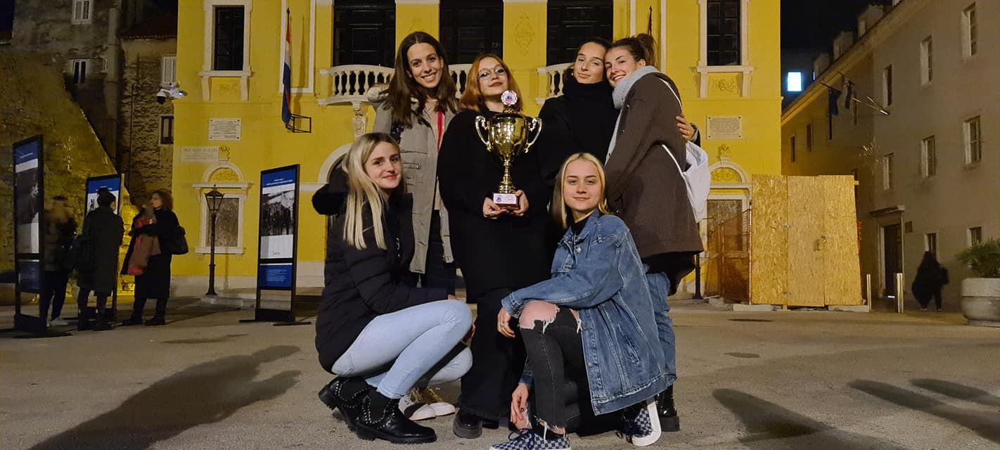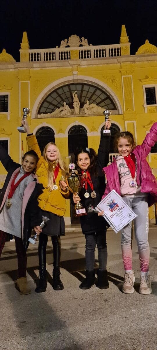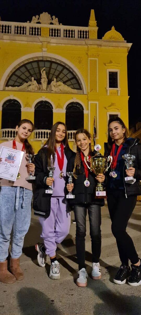 12 ( Nina Božić, Bruna Videka Anastasia Svirko, Tena Stubnja, Margarita Šunjić, Karla Čaljkusić, Mina Ugrin, Nikka Martinović, Marta Čičerić, Laura Vojnović, Irma Duilo) 1. mjesto modern group junior.