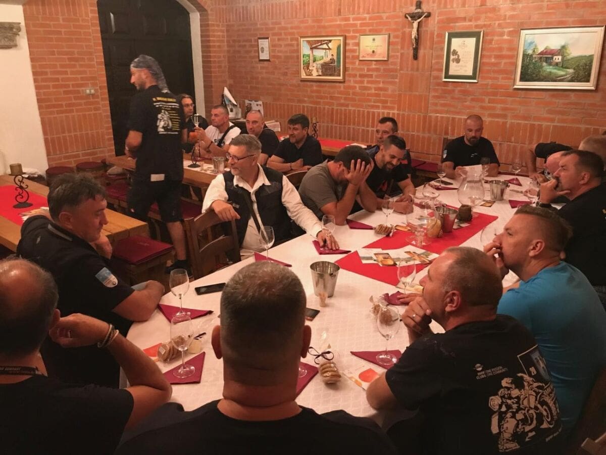 Iako nas je prala kiša cijelim putem, stižemo točno u dogovoreno vrijeme u Club House MK Zagorski Orlovi gdje nas dočekuje 15-tak njihovih članova i miris kotlovine koja je taman gotova. Uz ukusnu kotlovinu i kolače koje su napravile supruge i cure naših domaćina, moralo se po dobrom starom običaju i nazdraviti mašinskim uljem 20w 50.