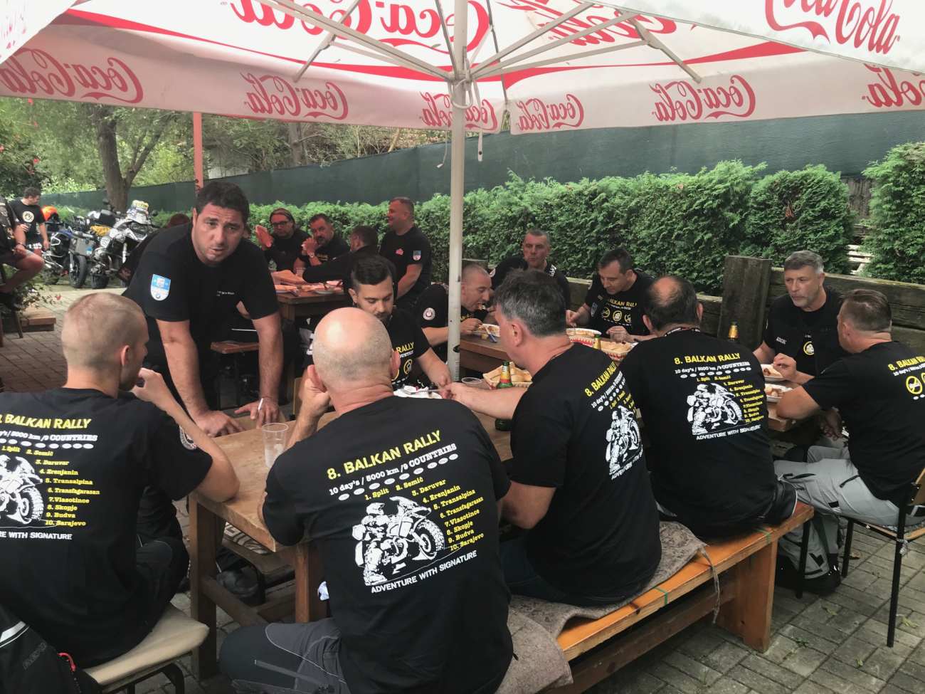 Nakon obilaska svi sudionici Balkan Rallyja su dobili poklone od tvrtke Akrapovič, a njihov fotograf nas je fotografirao ispred tvornice. Potom smo krenuli prema Oroslavju gdje nas dočekuje MK Zagorski Orlovi koji nam tradicionalno svake godine pripremaju za ručak najbolju kotlovinu na ovoj ruti.