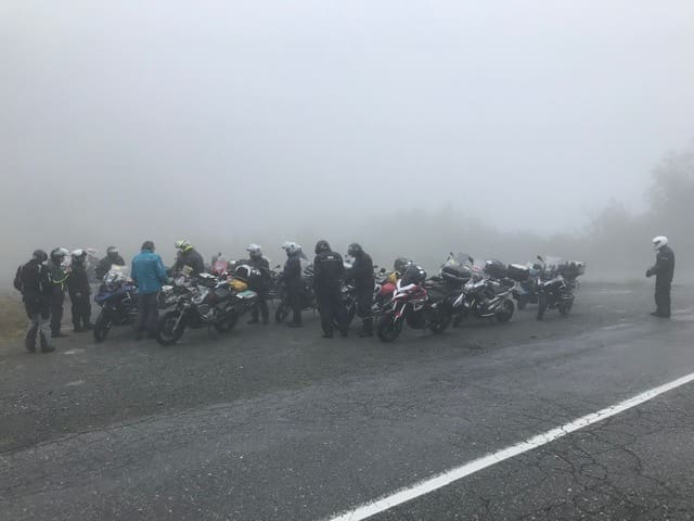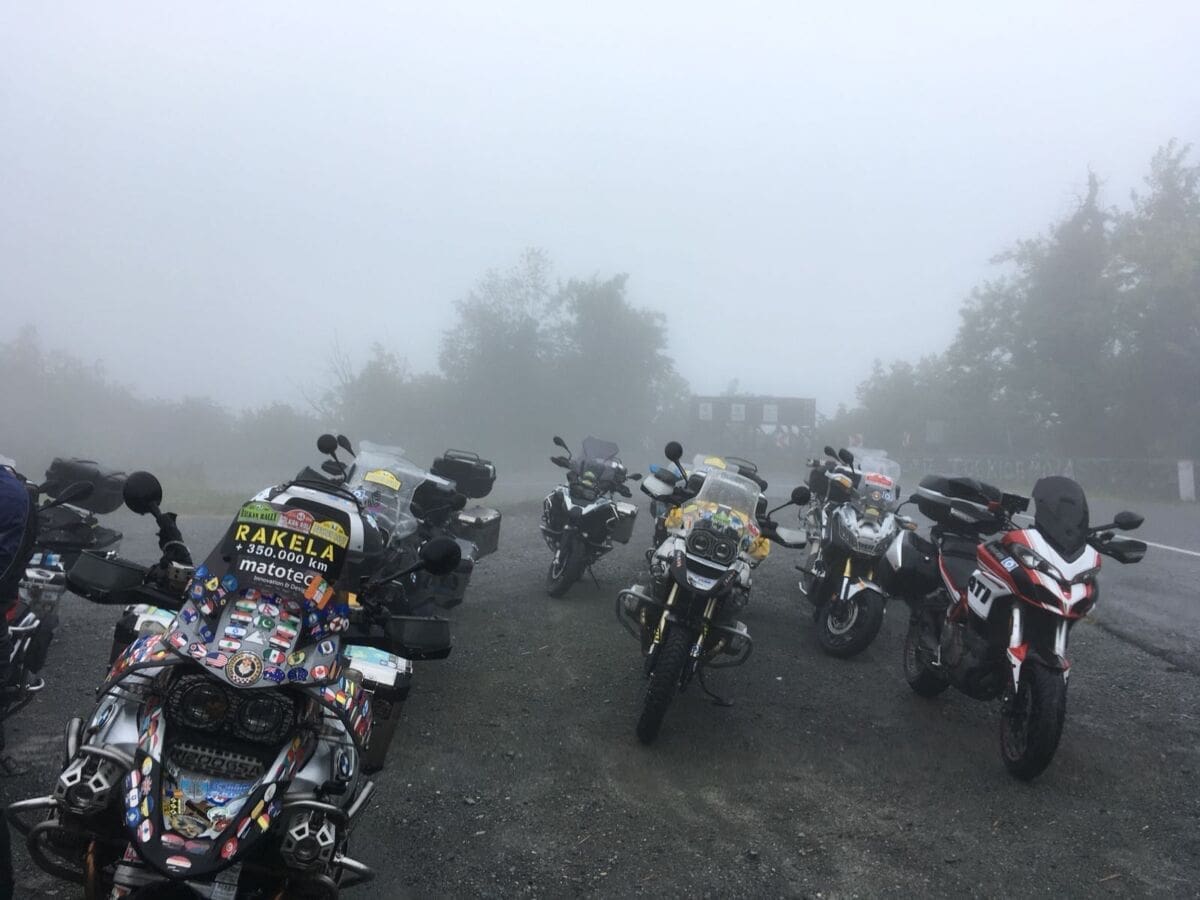 Do Papuka nas je stalno pratila kiša, a kad smo stigli na Papuk, kako smo se počeli uspinjati ušli smo u maglu. Među nama je bilo vozača koji do sada nisu imali iskustva vožnje u takvim uvjetima, ali malo pomalo su se privikavali na mokru cestu, kišu, maglu i zavojitu cestu punu otpalog lisća. X-ADV je vozio Josip Dujmović koji je sve prepreke savladao bez problema, a gume Pirelli SCORPION RALLY STR su se jako dobro ponašale s obzirom da imaju grublju terensku šaru. Kad smo došli na sami vrh Papuka napravili smo pauzu i izvadili hranu, tj. roštilj koji nam je ostao sinoć od večere (Balkanska plata). Držali smo se moje poslovice “ne jede se kad si gladan nego kad je prilika“ i naravno ništa nismo bacili. Nakon pauze počelo je spuštanje; magle više nije bilo, a i kiša je popustila.